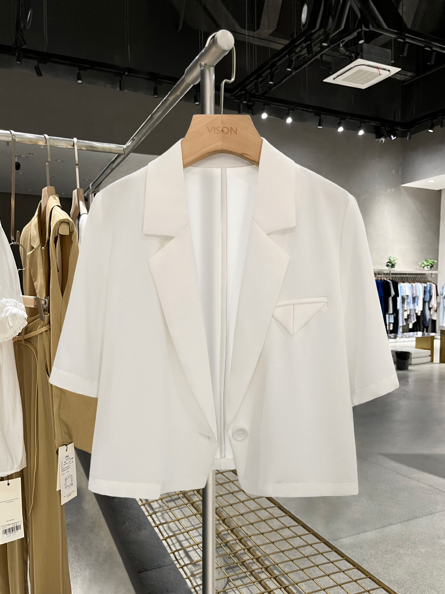 Ummer Thin White Loose Short Sleeve Blazer Jacket Wo – Puffer Jacket Outfit