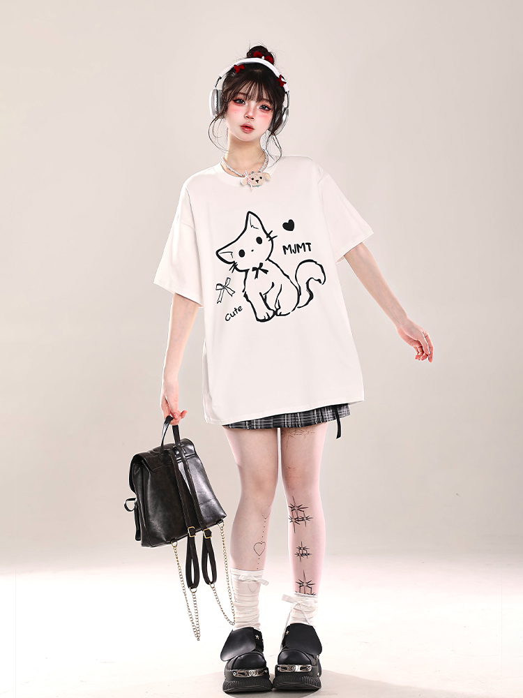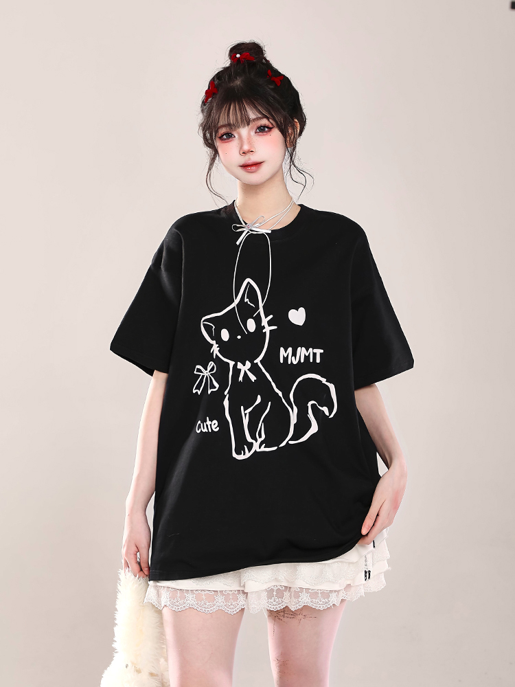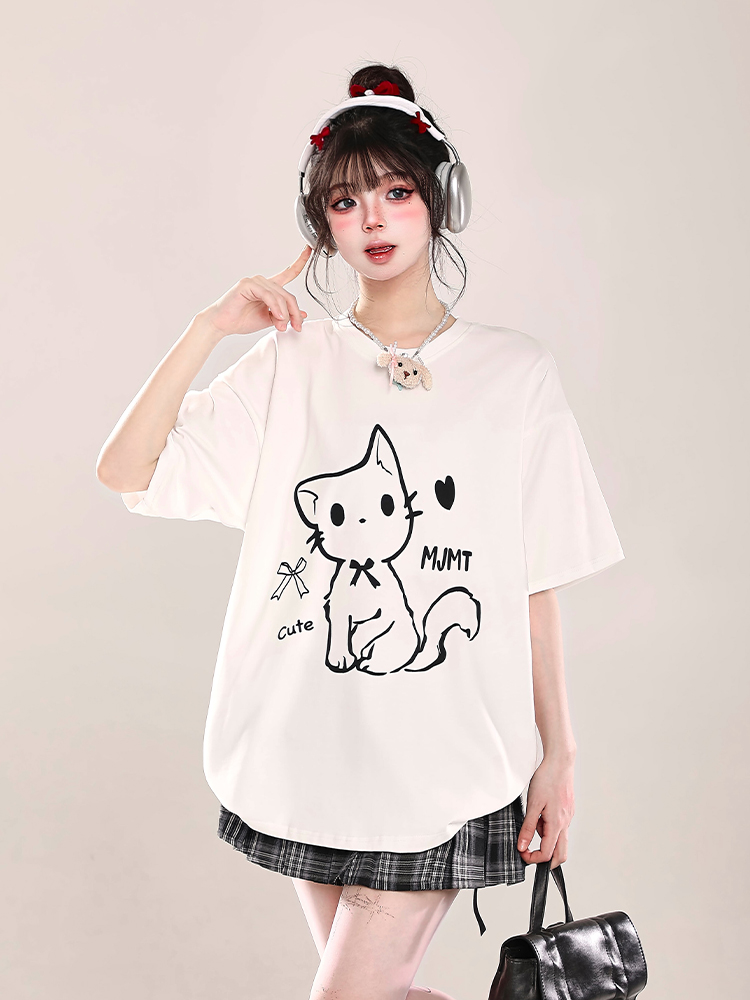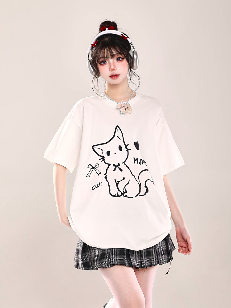 Step into summer with our 2025 Summer Women’s Cartoon Cat Print Round Neck Short Sleeve T-Shirt! This casual loose tee features an adorable cartoon cat design that captures the playful spirit of Y2K style. With its comfortable fit and trendy aesthetic, it’s perfect for any laid-back outing or a fun day out with friends. Made from soft, breathable fabric, this t-shirt ensures you stay cool and stylish all season long. Don’t miss out on this must-have addition to your wardrobe add to your cart today!