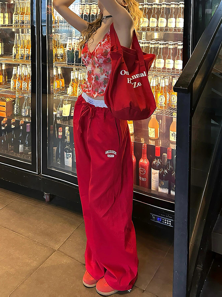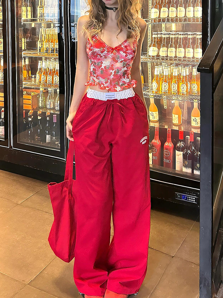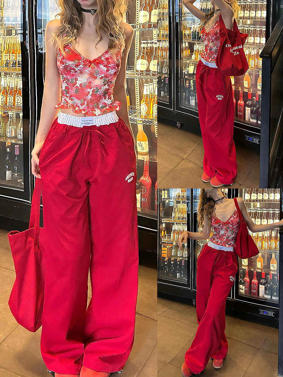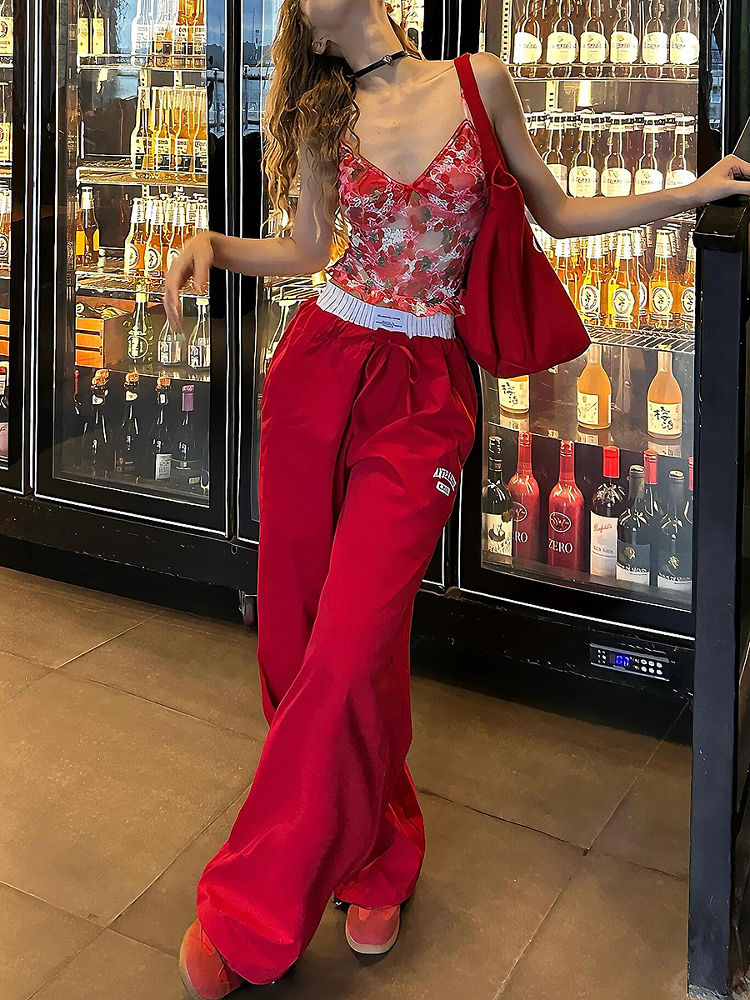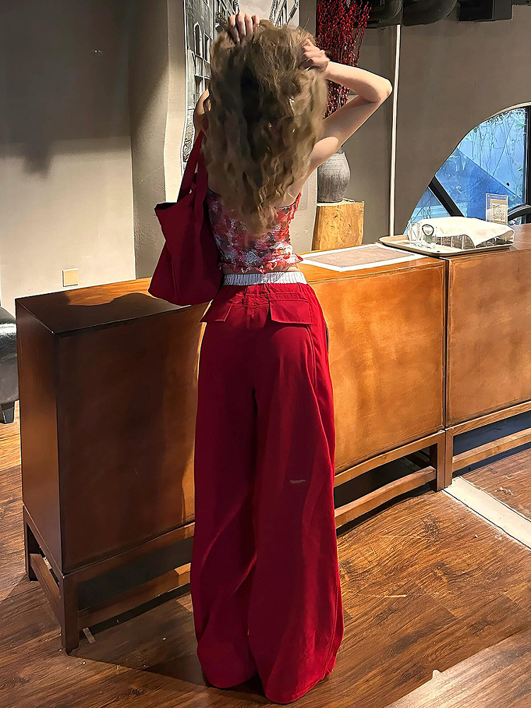 Women Faux Two Wide Leg Loose Straight Work Pantsred – – Work Outfits Women
