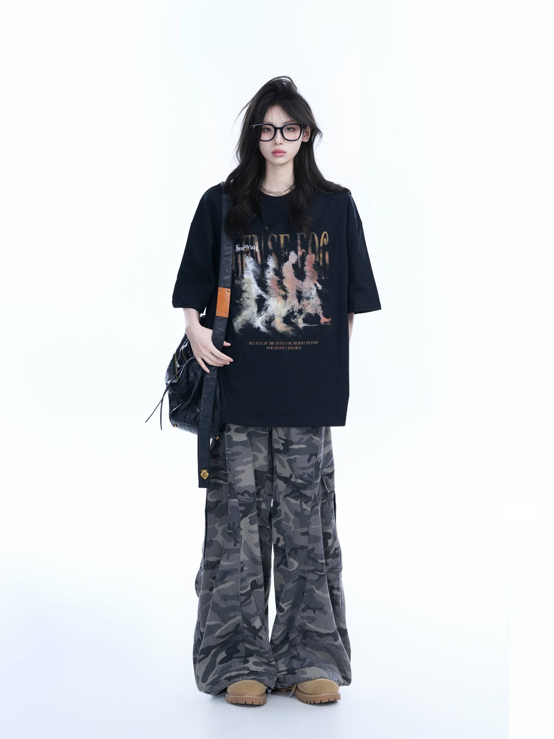 Retro Character Black Short Sleeve Women Summer Heavy Loose N – Summer Fits