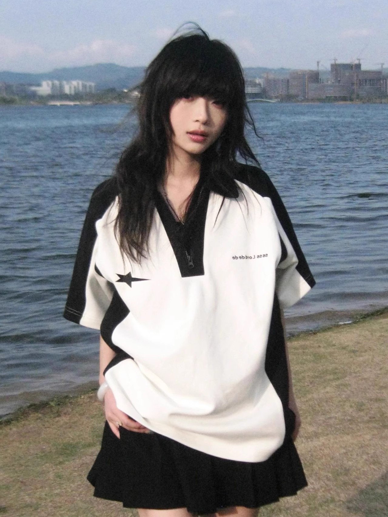 Elevate your summer wardrobe with our American Retro Color-Blocking Heavyweight Polo T-Shirt, designed for the modern woman. This short sleeve top combines a relaxed fit with vibrant color-blocking details, making it the perfect choice for casual outings or college style. Crafted from premium heavyweight fabric, it offers both comfort and durability, ensuring you look effortlessly chic while staying cool. Don’t miss out on this must-have piece add it to your cart and step out in style today!