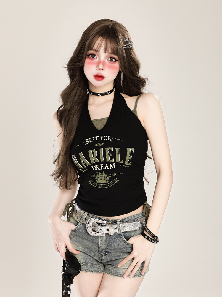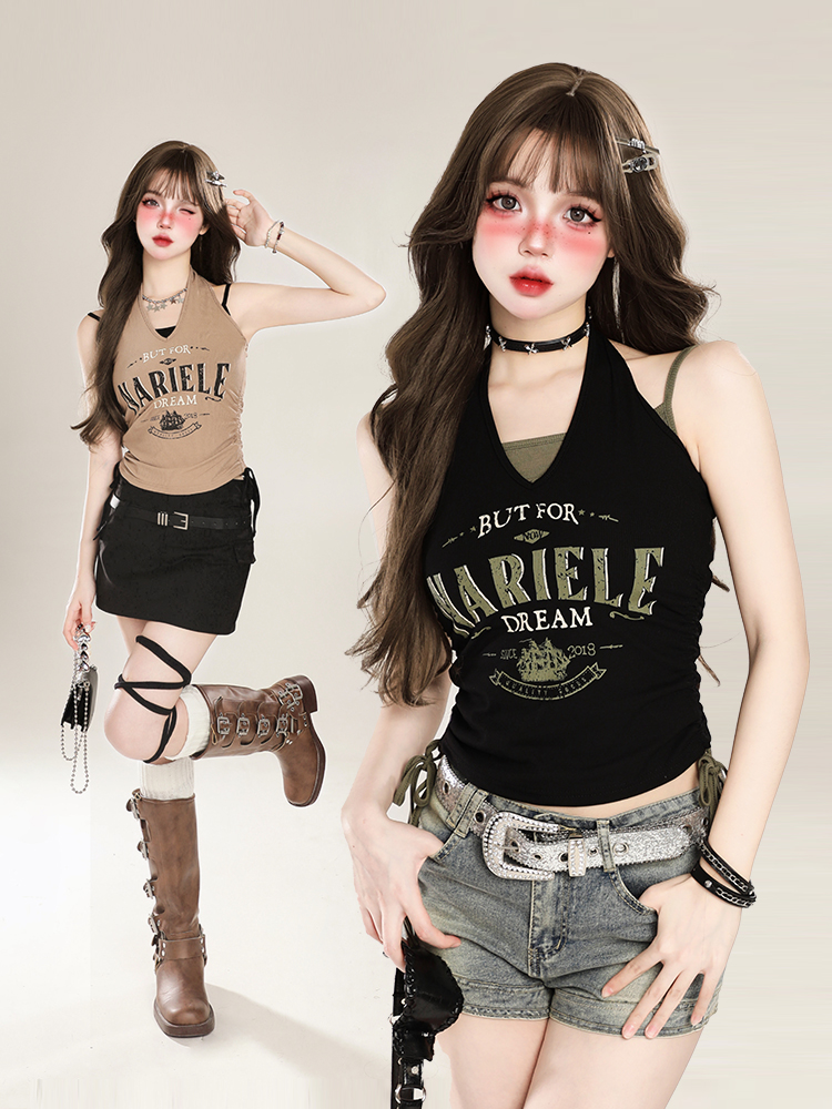 Elevate your summer wardrobe with our American Retro Halter Crop Top, designed for the modern woman who loves Y2K fashion. This chic top features a flattering drawstring design that allows for a customizable fit, while the sweet faux two-piece style effortlessly combines comfort and trendiness. Perfect for sunny days, pair it with your favorite high-waisted shorts or a flowy skirt for a stylish look. Don’t miss out on this must-have piece add it to your cart today!