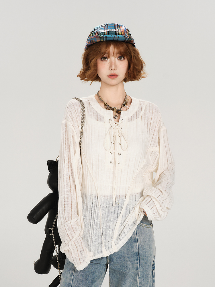 Retro Lace up Hollow Sun Protection Shirt Women Sum – Casual Summer Outfits