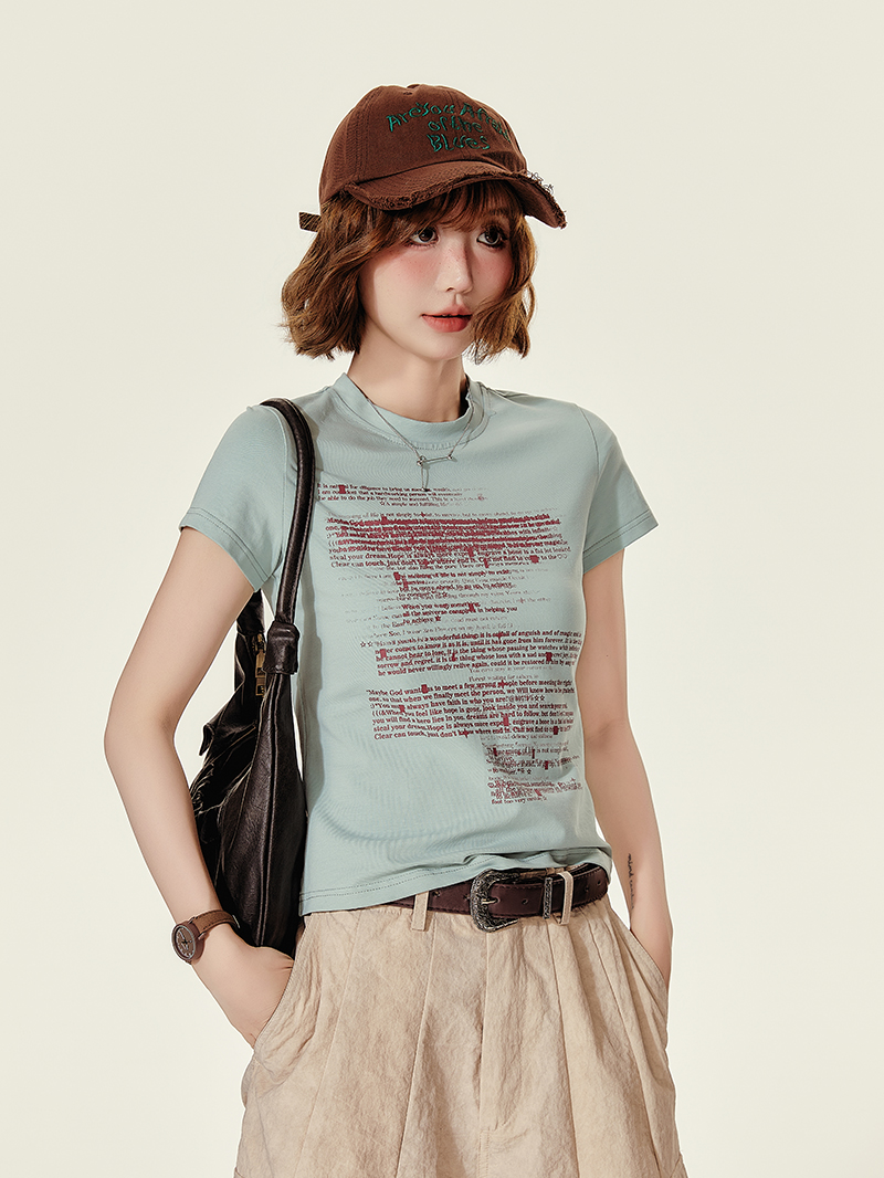 Be the first to review “Retro Letter Print Short Sleeve Women Slim Fit Summer TopGirly” Cancel reply