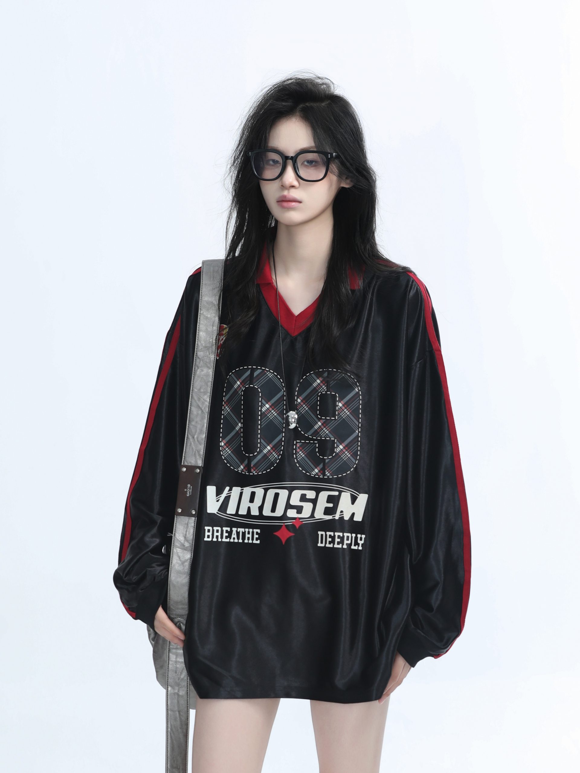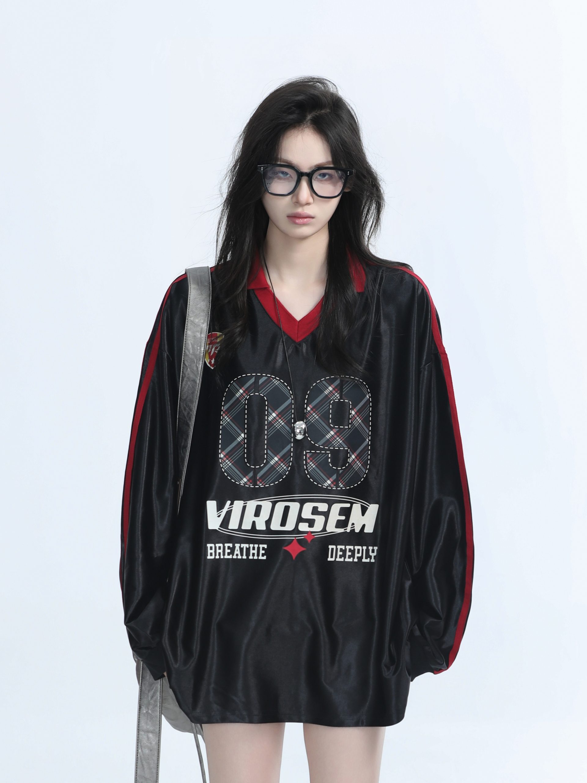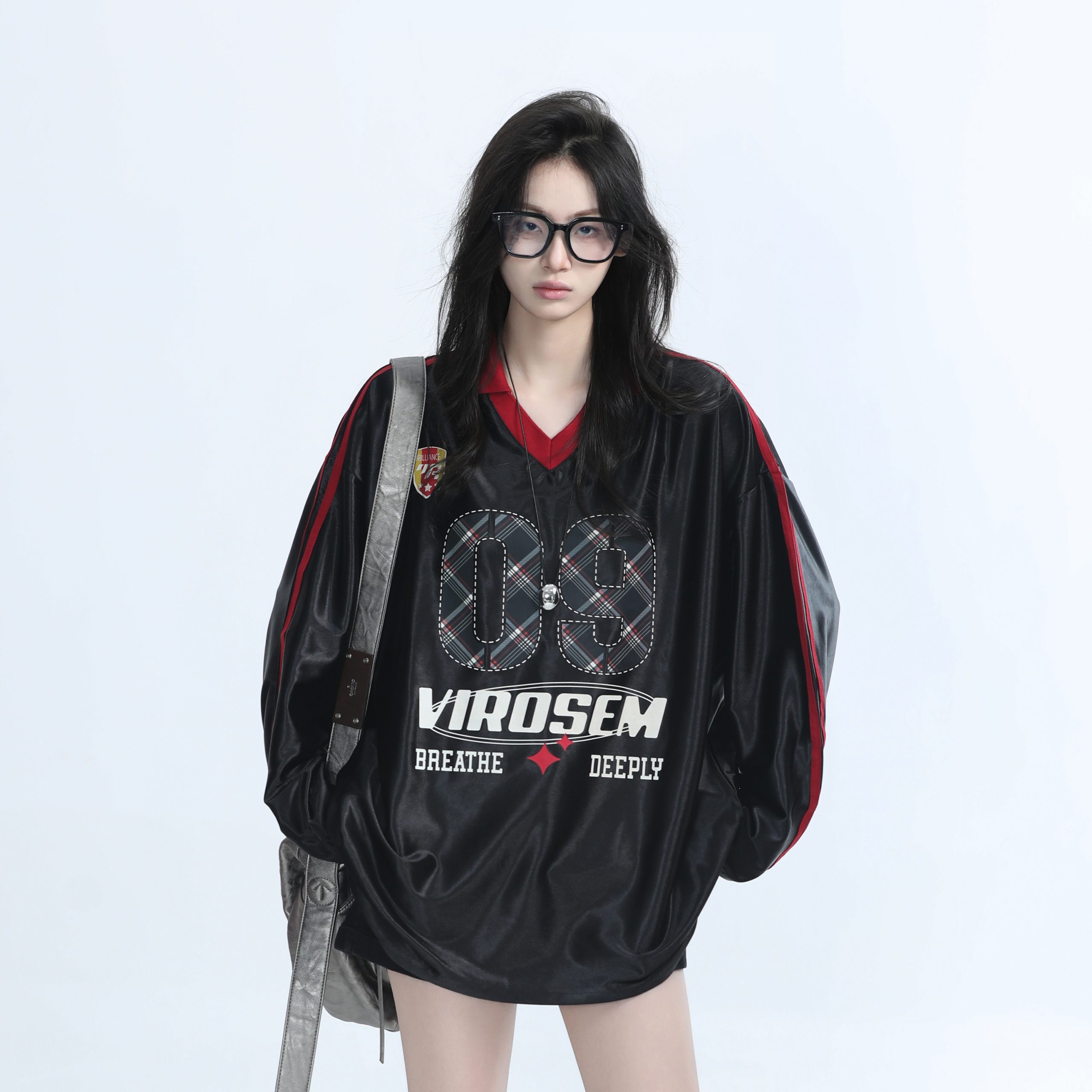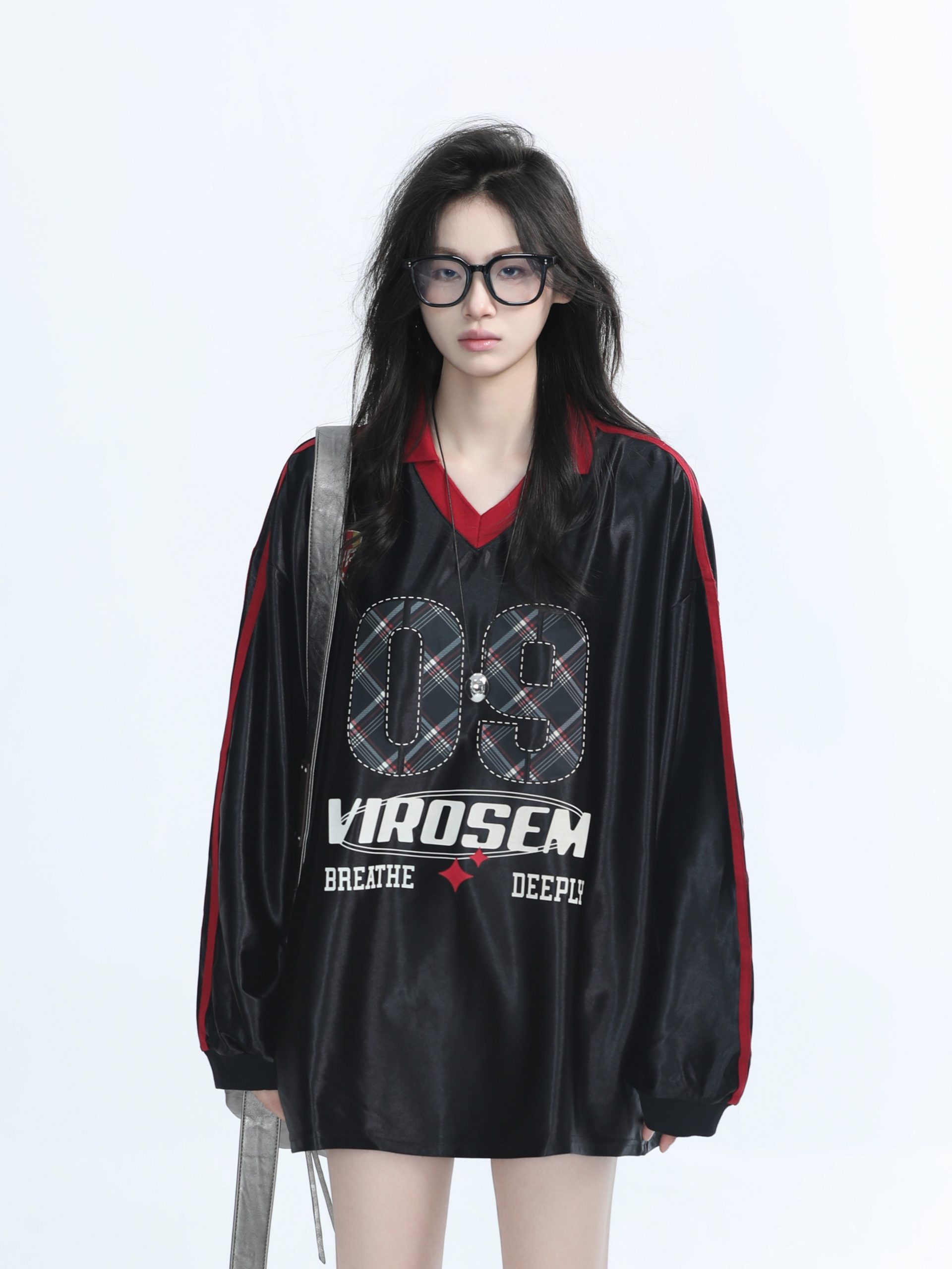 Retro Oversized White Long Sleeve Women Cozy Polo Jers – Fall Outfits Women