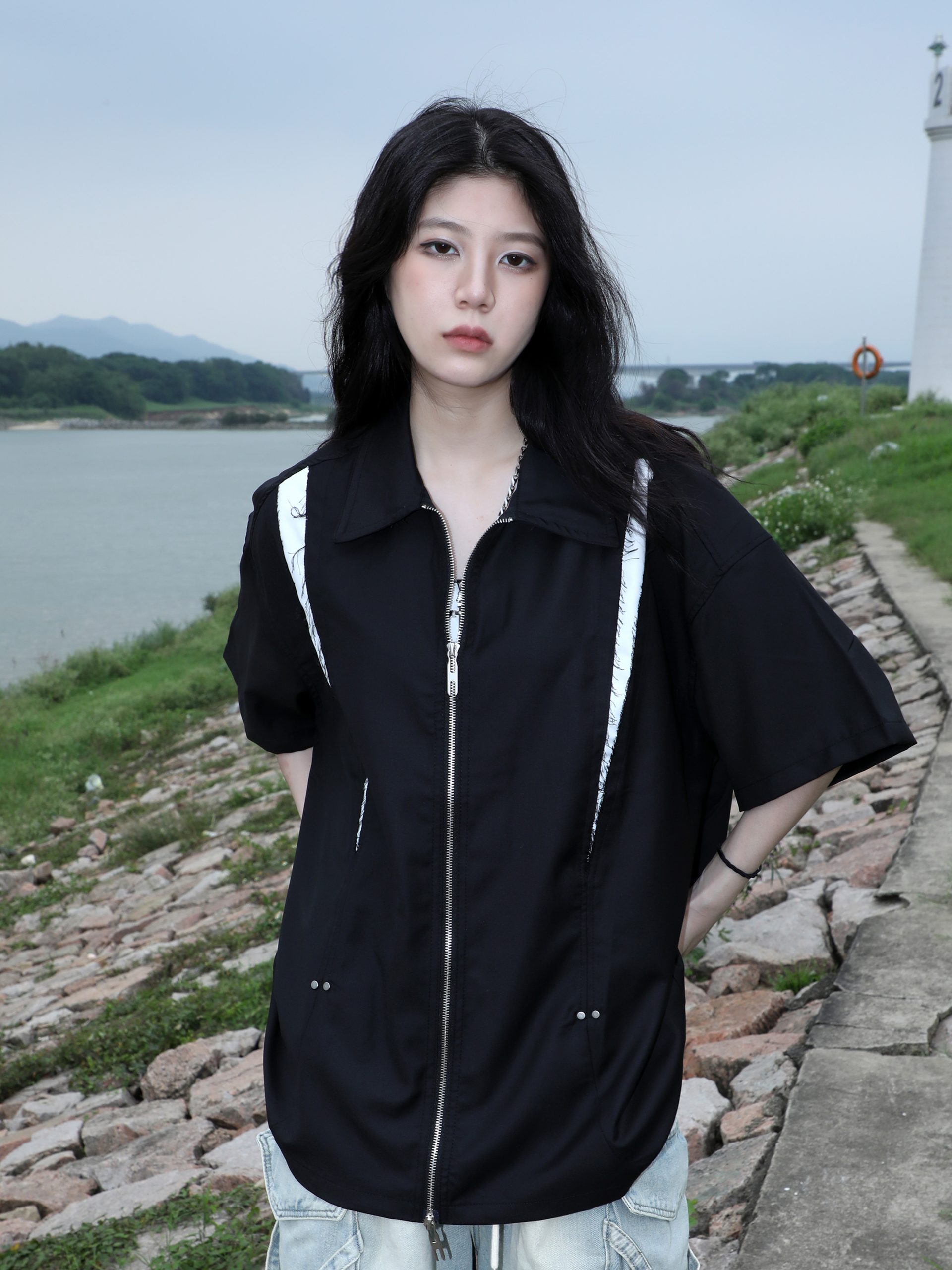 Retro Patchwork Zip Short Sleeve Shirt Women Summer Loose Fit Casual Top, Y2K Street High-quality product featuring summer fits, casual summer outfits, fall fits and more. Modern design that fits the latest trends. Premium materials ensure durability and comfort. Order now for special offers! Product designed with attention to every detail. Suitable for all occasions and personal styles.
