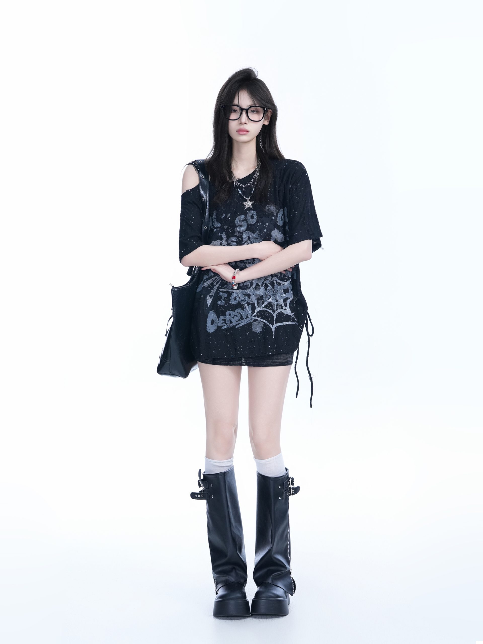 Elevate your wardrobe with the vibrant Sit and Eat off-shoulder t-shirt, designed for women who embrace the Y2K aesthetic. This loose-fit tee features playful graffiti-inspired graphics that effortlessly blend style and comfort, making it perfect for casual outings or relaxed days at home. With its unique design and trendy short sleeves, this top is a must-have for anyone looking to make a statement. Don’t miss out on this fashion staple add it to your cart today!