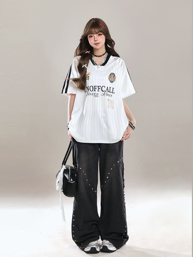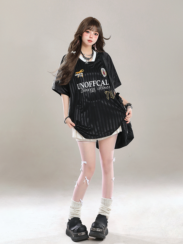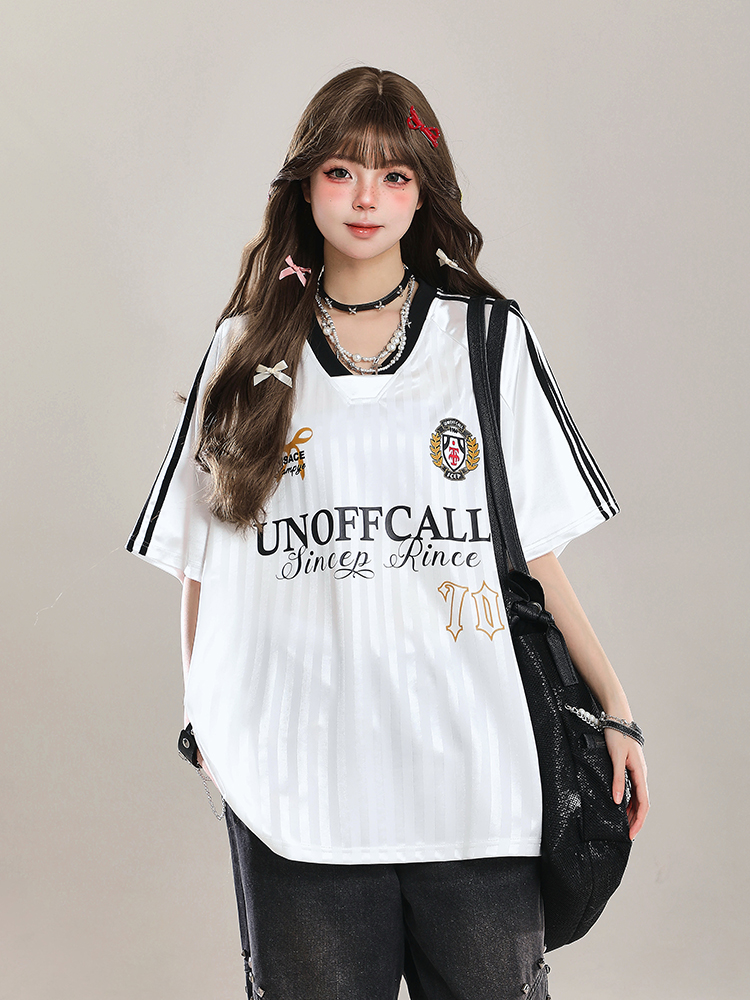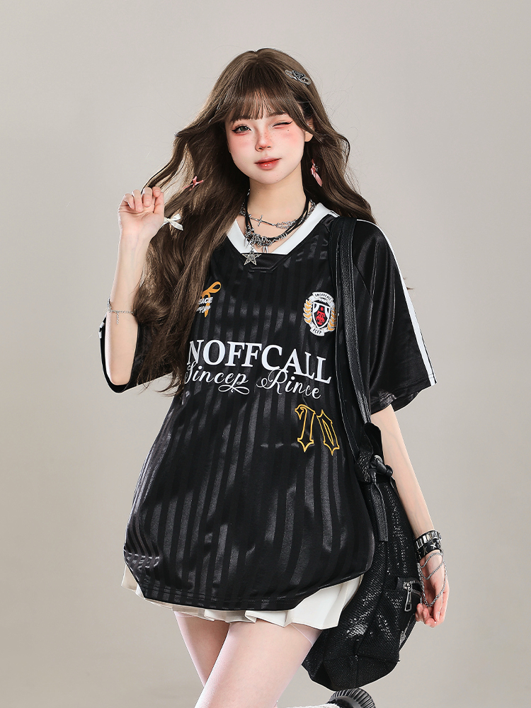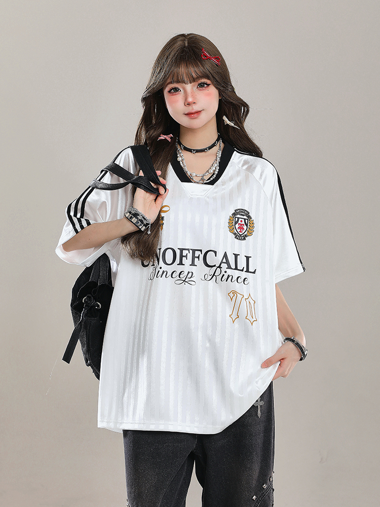Elevate your summer style with our American-Style V-Neck Sports Jersey Short Sleeve T-Shirt for Women. This loose-fit top offers ultimate comfort and breathability, making it perfect for casual outings or active days. Its trendy V-neck design and sporty silhouette ensure you stay chic while enjoying a laid-back vibe. Don’t miss out on this versatile addition to your wardrobe shop now and embrace effortless style!