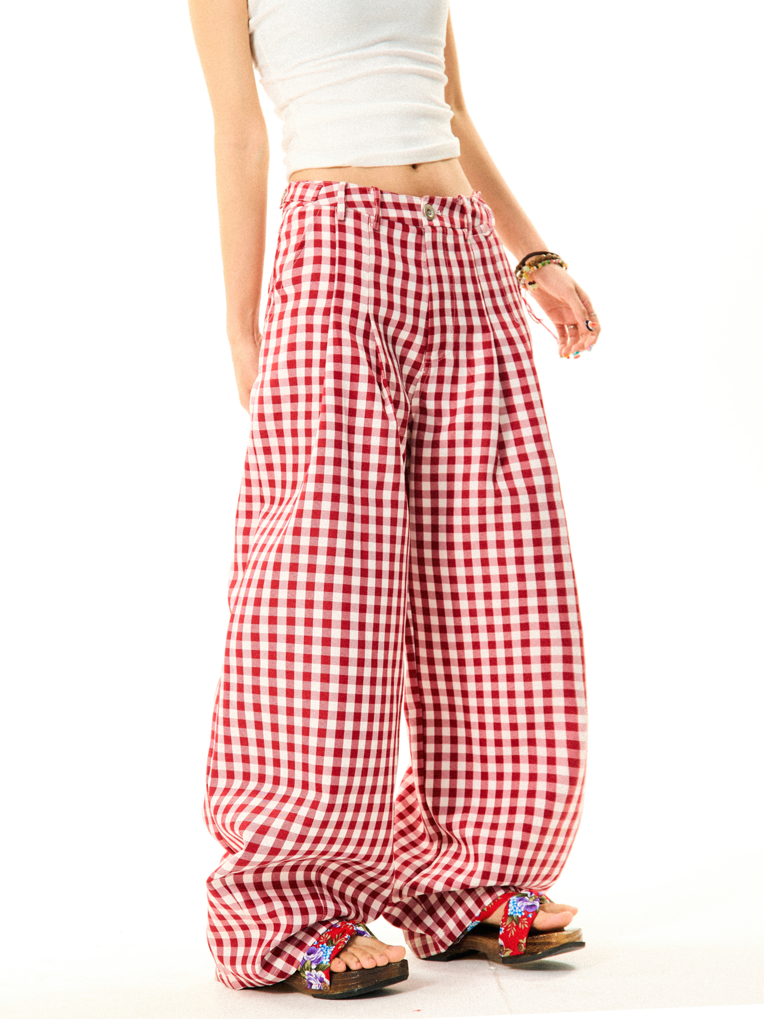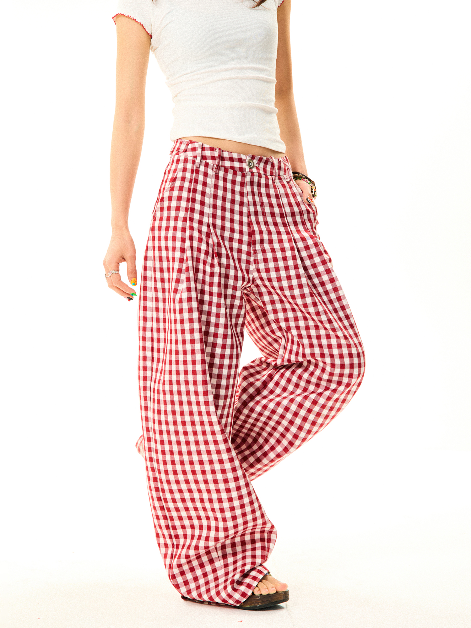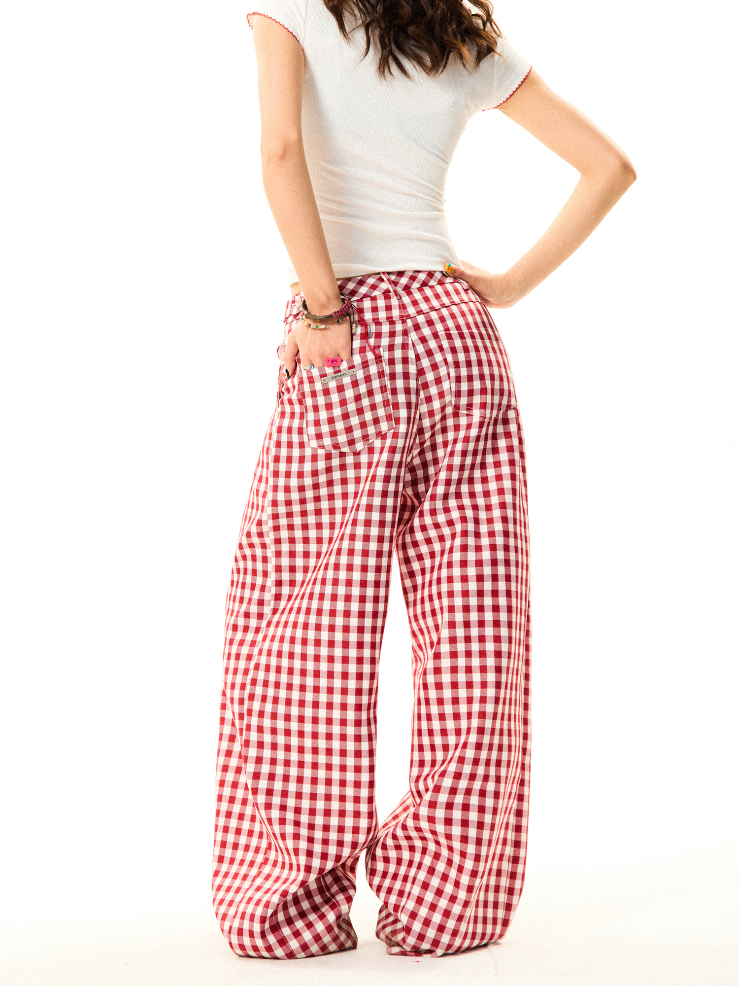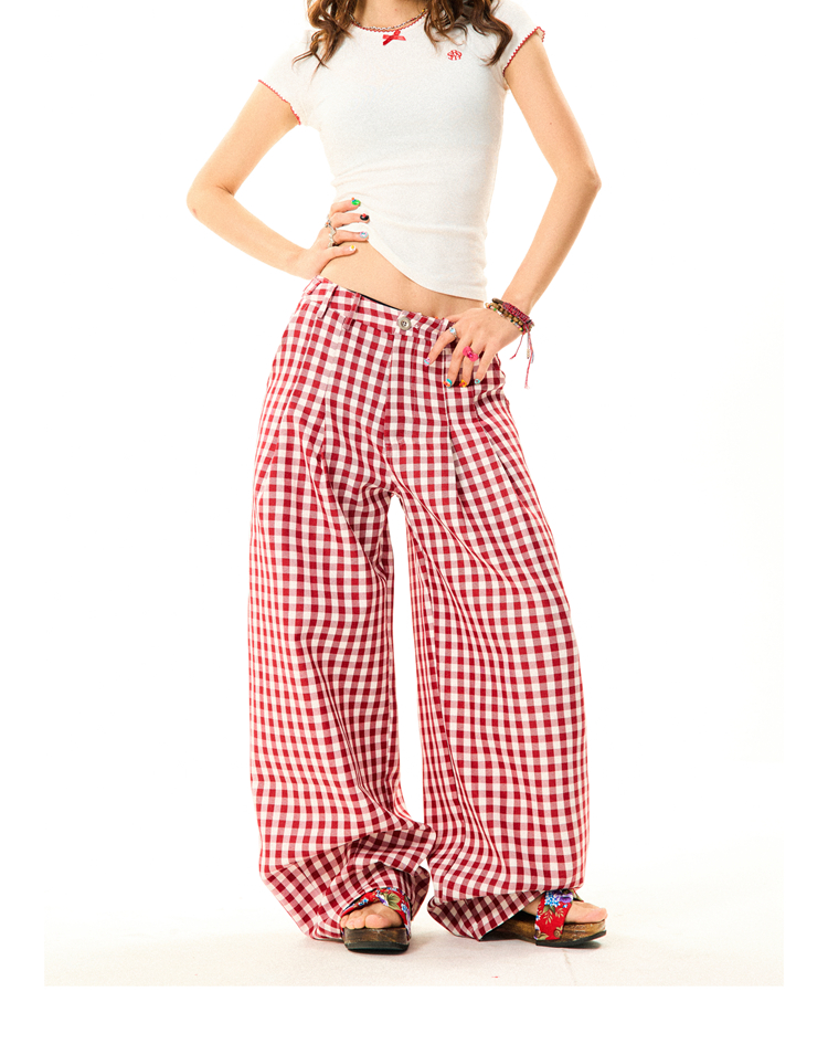 Step into effortless style with our American Sweetheart Red Plaid Wide-Leg Casual Pants for Women. Designed with a relaxed fit, these versatile trousers are perfect for embracing the Y2K aesthetic while providing all-day comfort. The bold red plaid pattern adds a pop of color to your wardrobe, making these pants ideal for both casual outings and everyday wear. Elevate your fashion game and enjoy the perfect blend of comfort and chic add these must-have pants to your cart today!