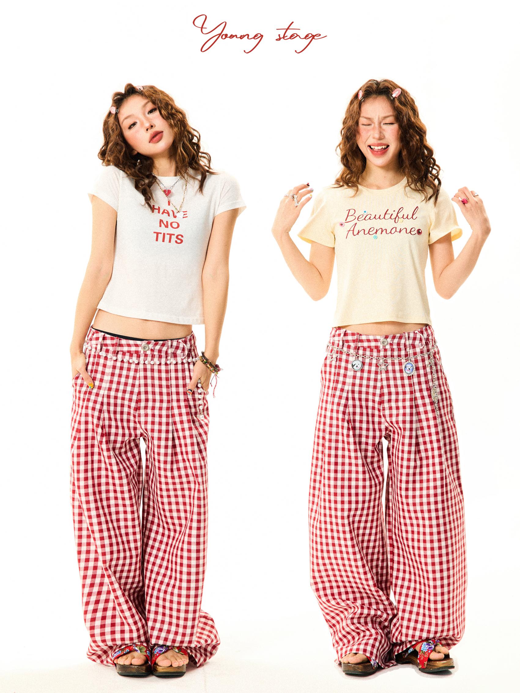 Sweetheart Red Plaid Wide Leg Casual Pants Women Relaxed Loose, Y2K High-quality product featuring easy costumes women, casual outfits, casual fall outfits and more. Modern design that fits the latest trends. Premium materials ensure durability and comfort. Order now for special offers! Product designed with attention to every detail. Suitable for all occasions and personal styles.