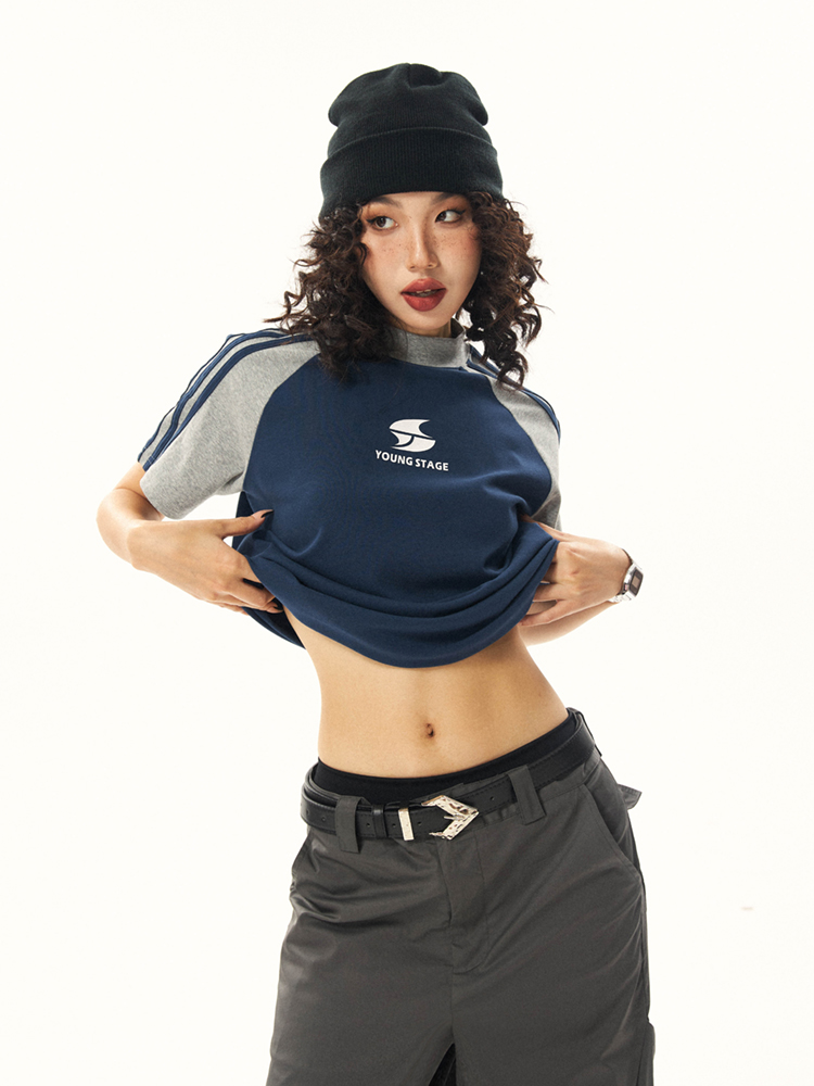 Vintage Summer Raglan Slim Fit Top for Trendy Y2k Outfits