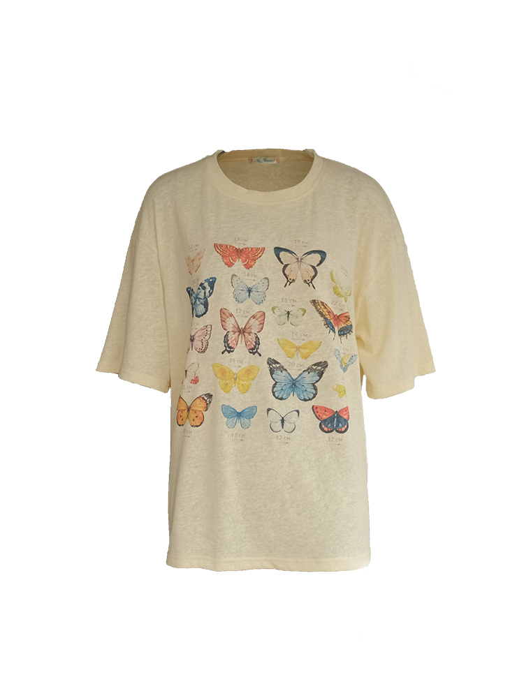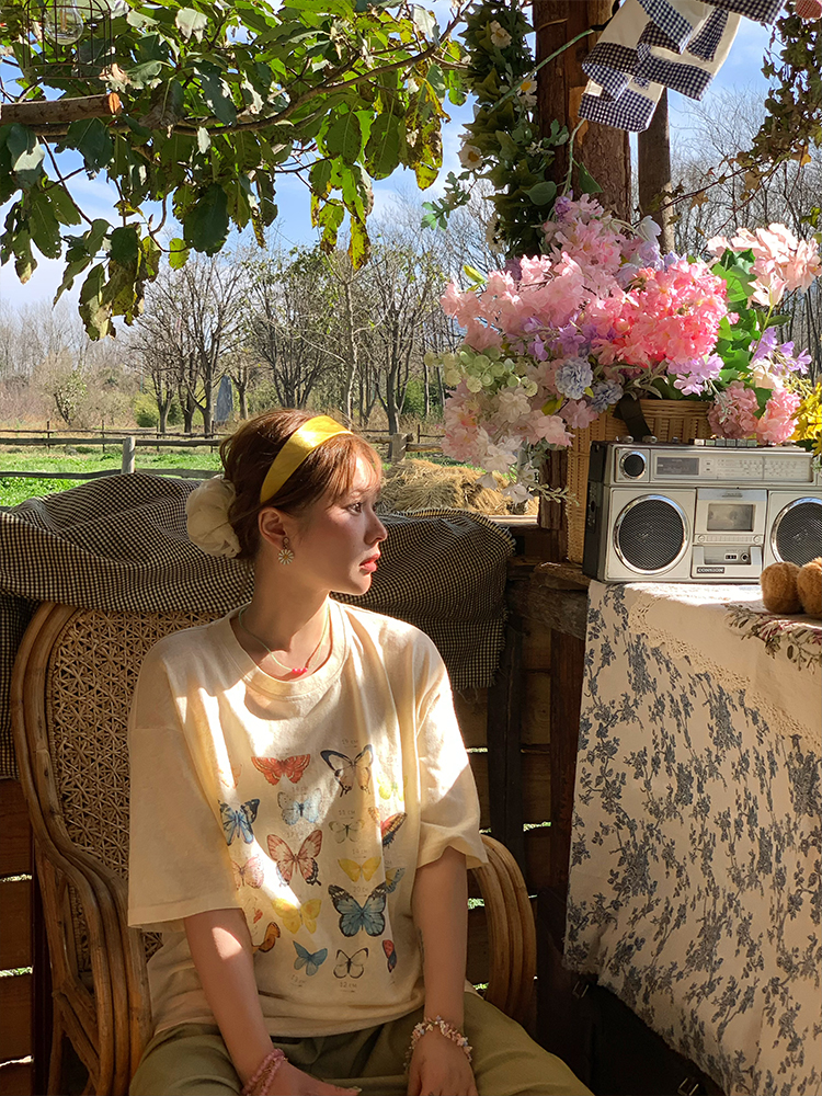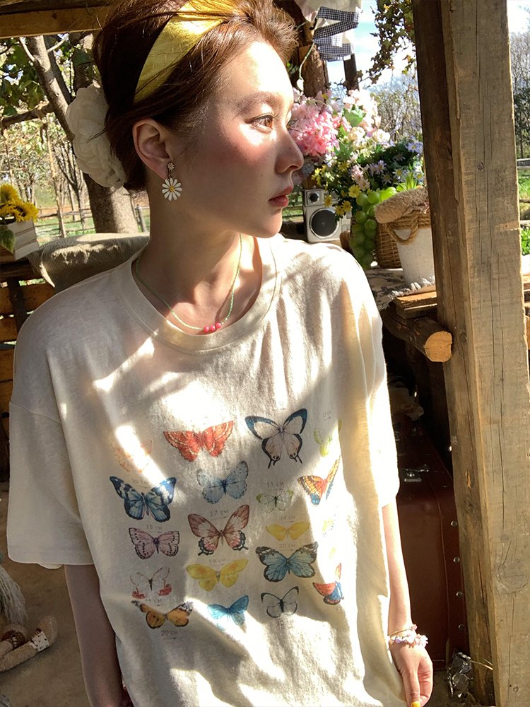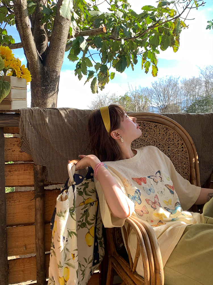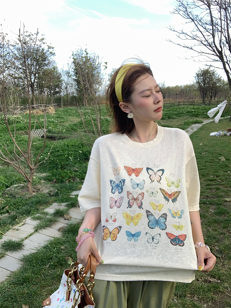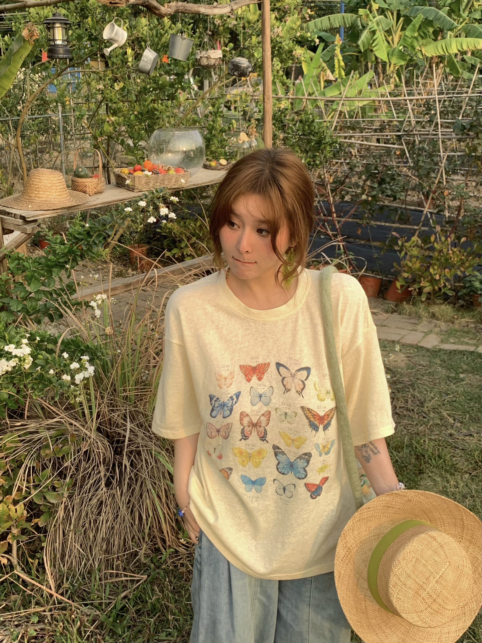 Vintage Apricot Yellow Butterfly Print Top: Stylish Summer Fits for Women