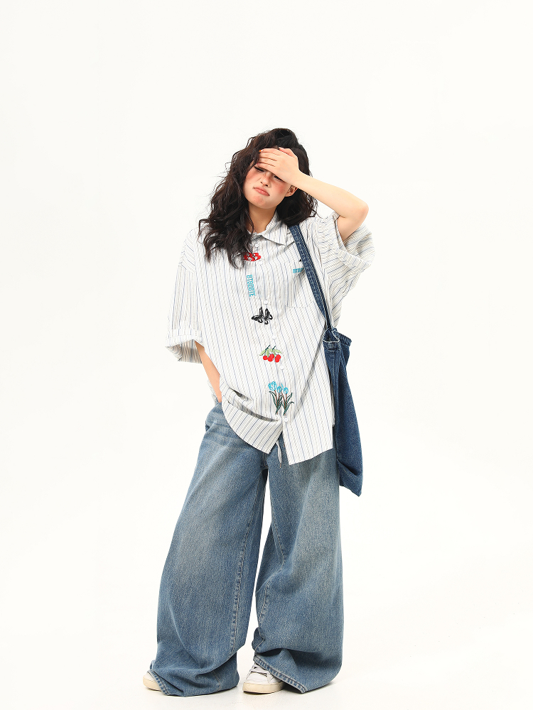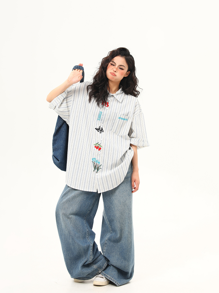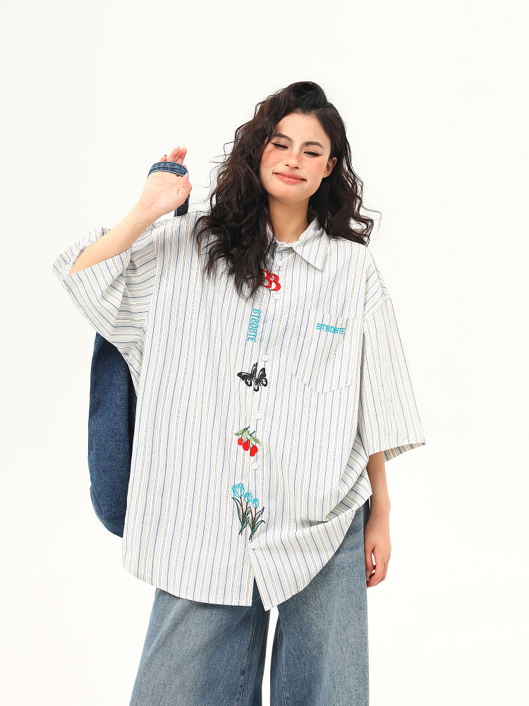 Elevate your summer wardrobe with our Artistic Embroidered Striped Short Sleeve Shirt for Women, a perfect blend of retro American style and modern flair. Crafted from lightweight, breathable fabric, this blouse features vibrant embroidery and a flattering fit that accentuates your silhouette while keeping you cool on warm days. Whether you’re heading to a casual brunch or a sunny day out, this versatile piece adds a touch of artistic charm to any outfit. Don’t miss out on this must-have summer staple add it to your cart today!