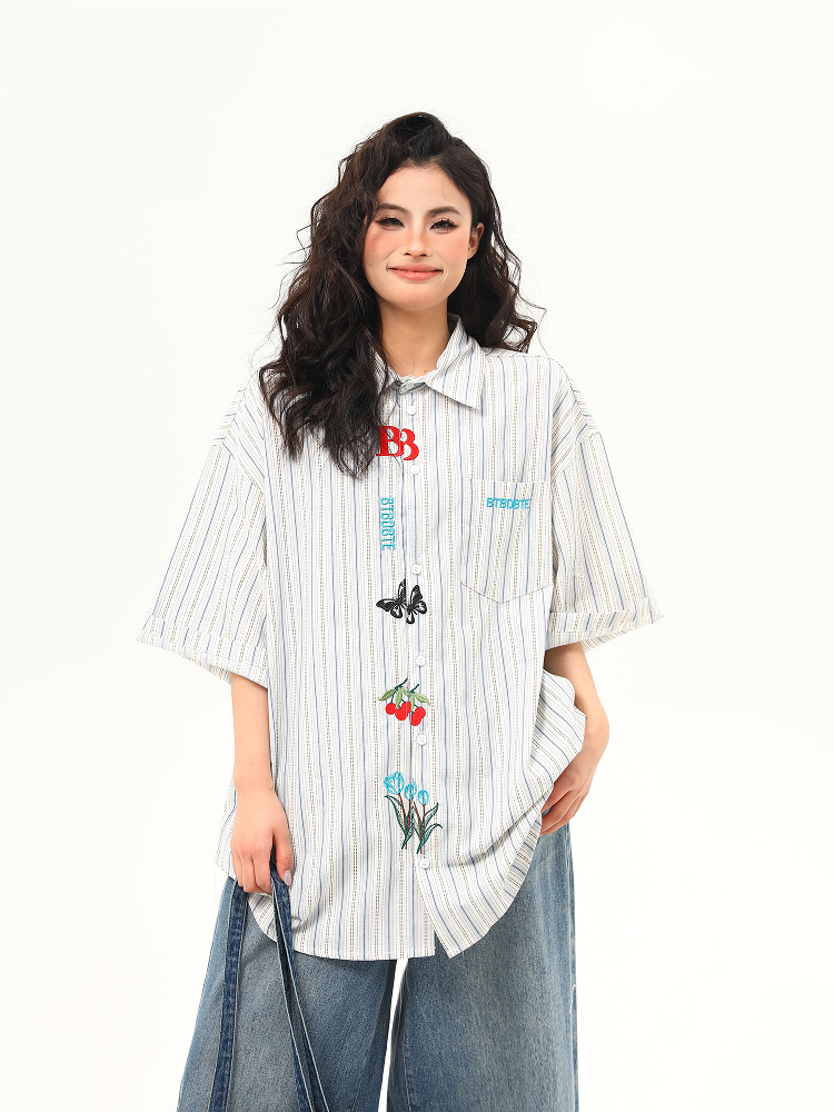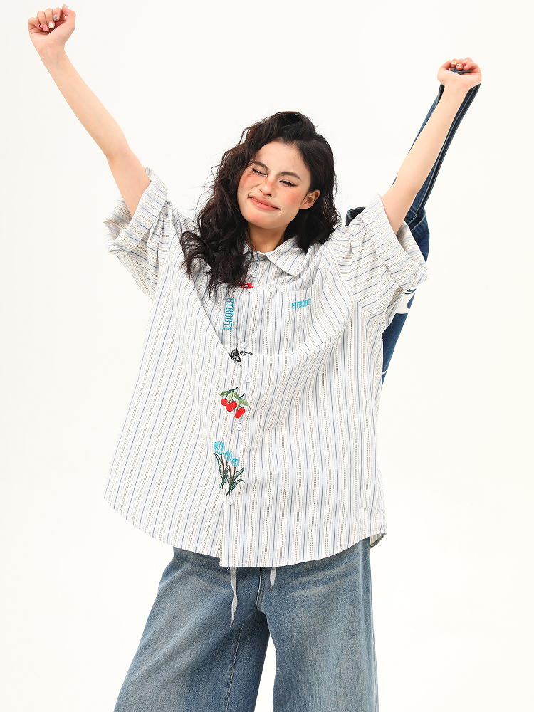 Embroidered Striped Short Sleeve Shirt for Stylish Summer Fits High-quality product featuring outfit inspo, outfit ideas, vacation outfits and more. Modern design that fits the latest trends. Premium materials ensure durability and comfort. Order now for special offers! Product designed with attention to every detail. Suitable for all occasions and personal styles.