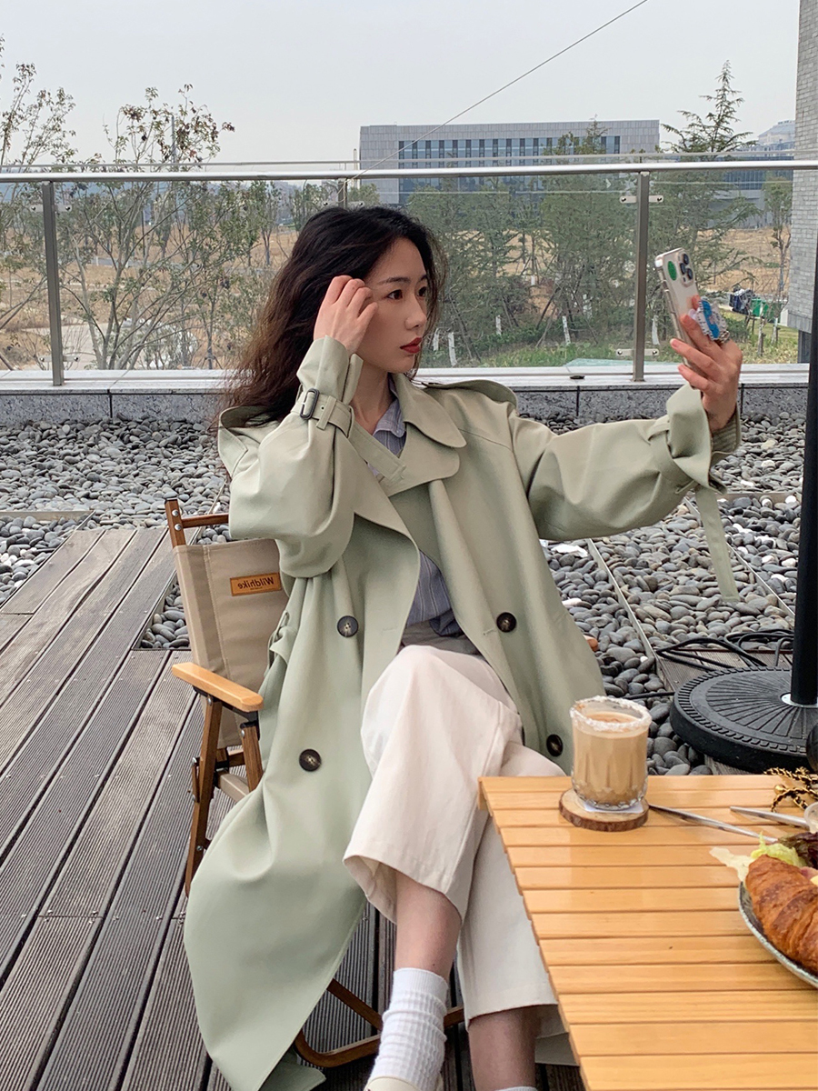 Bean Green Mid Length Trench Coat Women, Petite Sizes, pring Autumn British Korean High-quality product featuring fall fits, midsize winter outfits, easy halloween costume and more. Modern design that fits the latest trends. Premium materials ensure durability and comfort. Order now for special offers! Product designed with attention to every detail. Suitable for all occasions and personal styles.