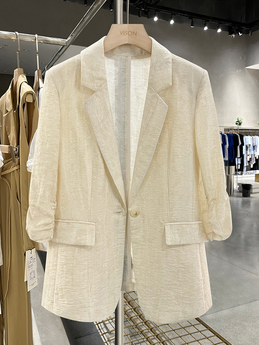 Beige Vintage Lightweight Suit Jacket Women ummer Pleated Blazer, able High-quality product featuring easy halloween costume, fall fashion, spring outfit and more. Modern design that fits the latest trends. Premium materials ensure durability and comfort. Order now for special offers! Product designed with attention to every detail. Suitable for all occasions and personal styles.