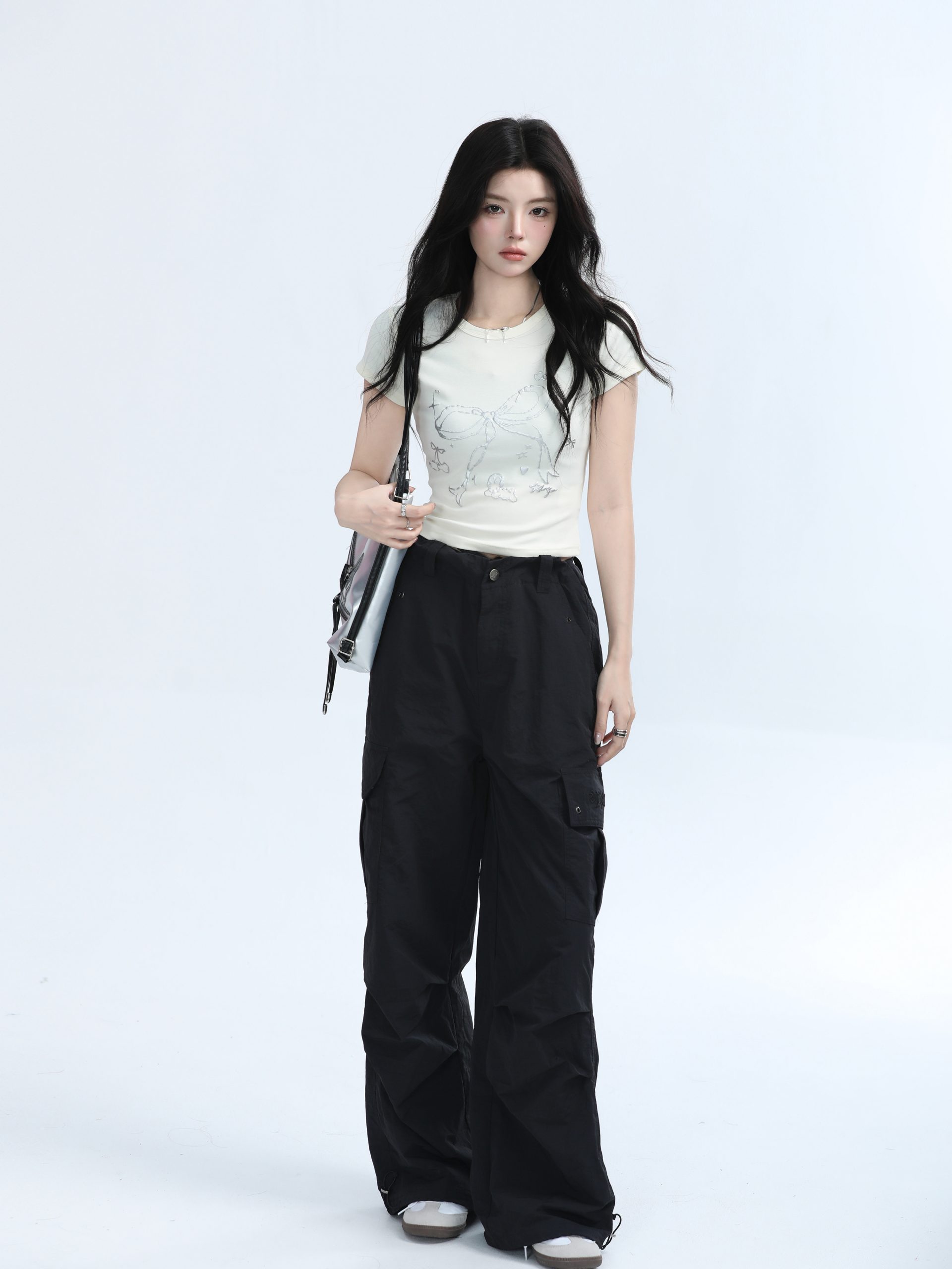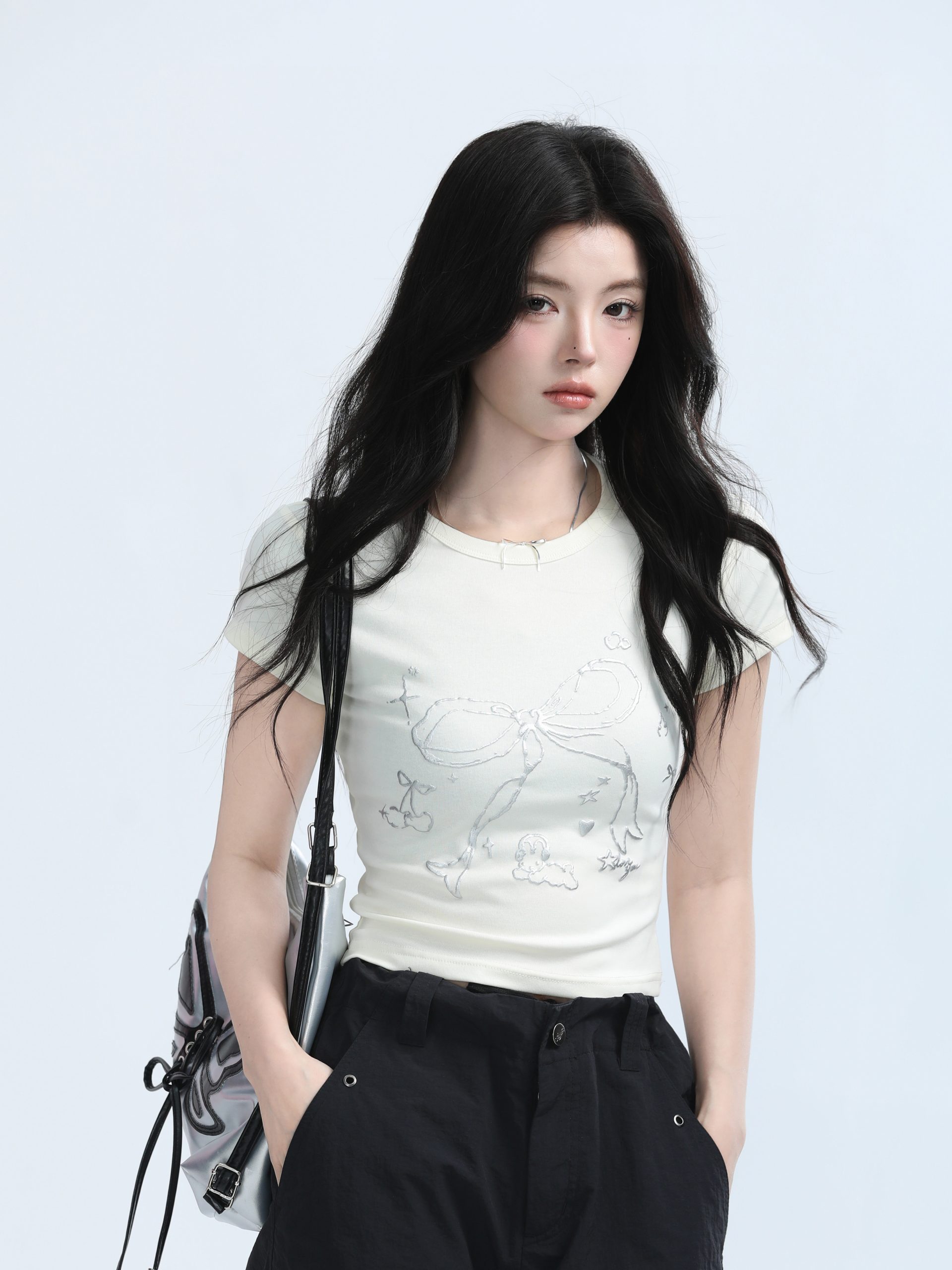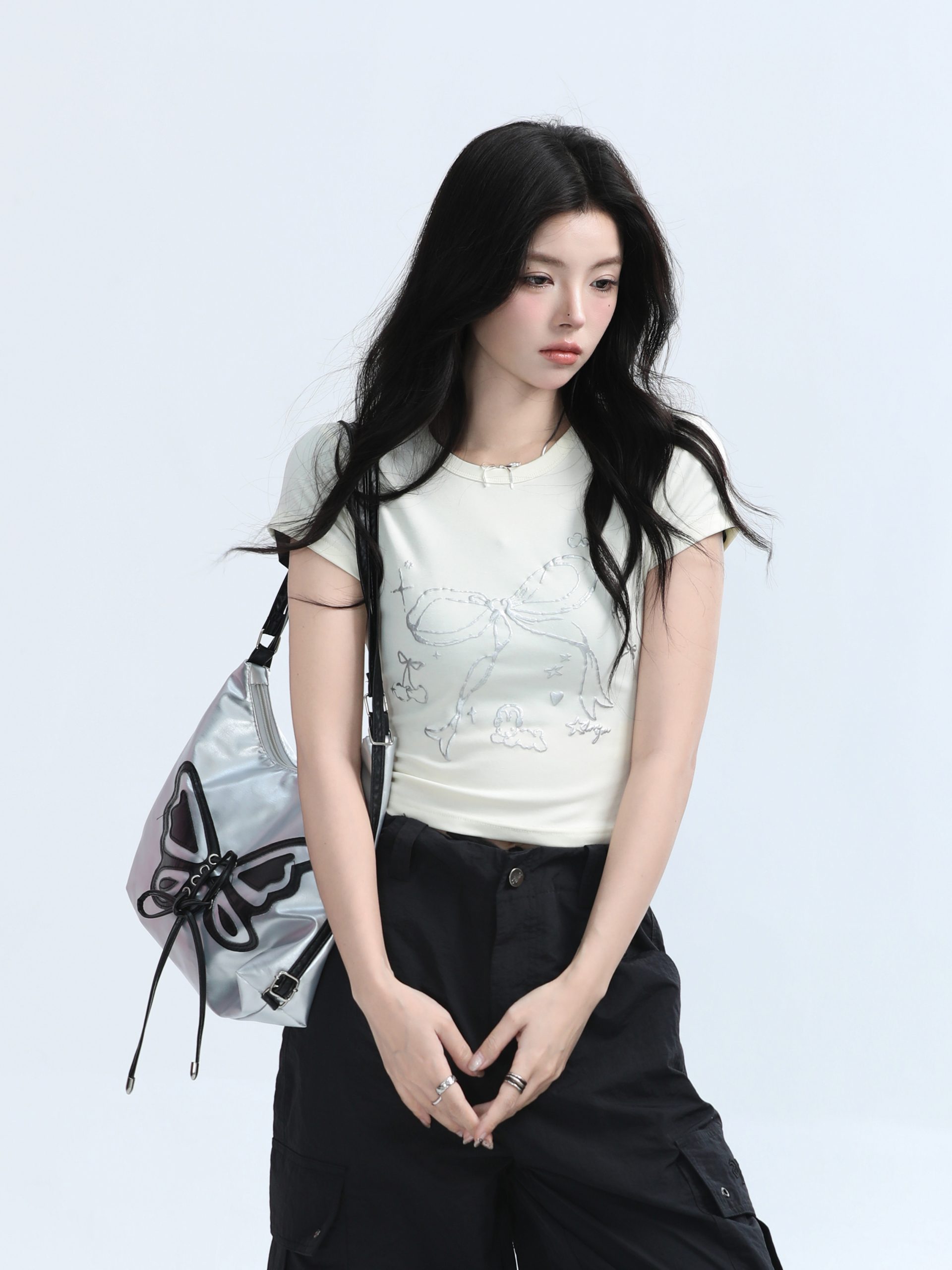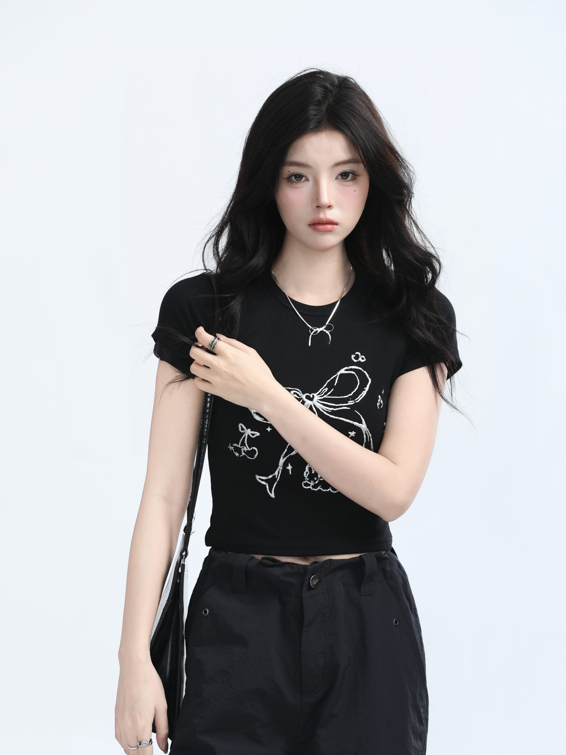 Black Short Sleeve Women Retro Bow Slim Fit Summer Top – Summer Fits
