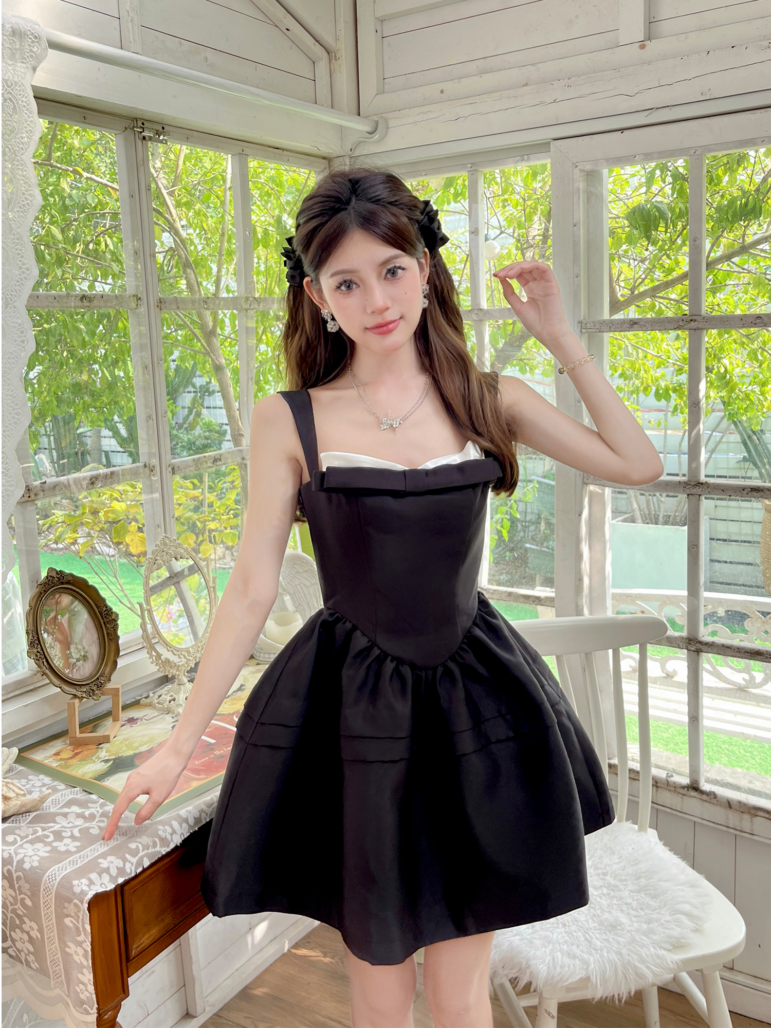 Elevate your wardrobe with our stunning Black Spliced Imitation Silk Spaghetti Strap Dress, featuring a charming pink bow and playful Fan Meow Meow design. This elegant princess-style dress offers a flattering fit that accentuates your silhouette while providing comfort and sophistication for any occasion. Whether you’re attending a garden party or a night out, this dress is the perfect choice to make a statement. Don’t miss out on this must-have piece add it to your cart today!