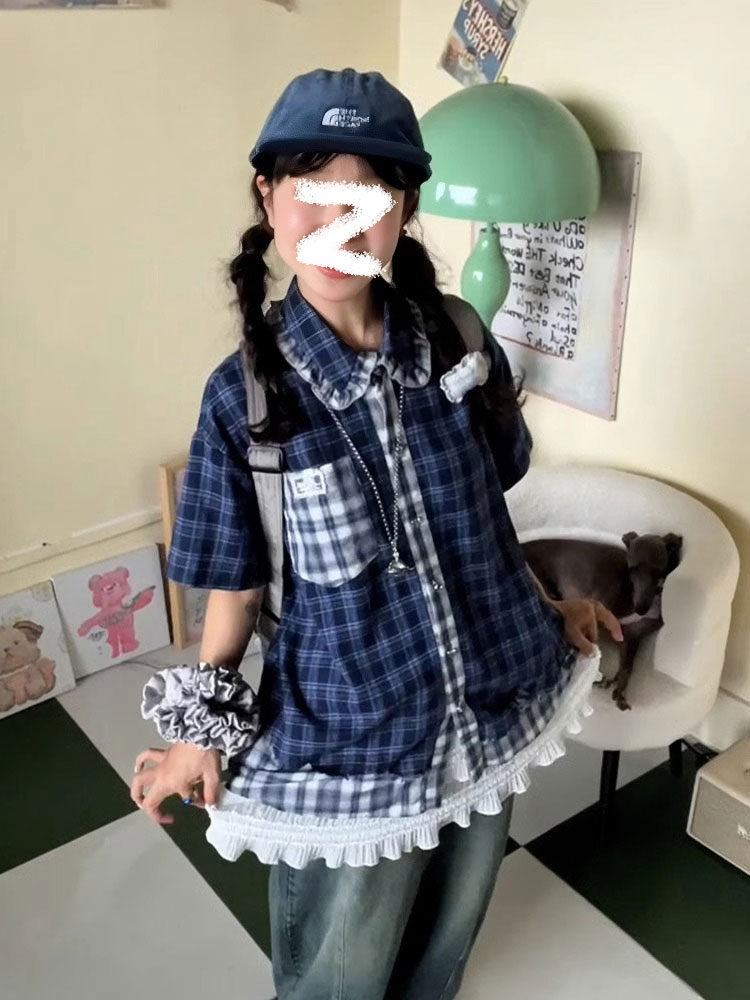 Blue Checkered Short Sleeve Shirt Women Summer Loose Casual Top, Korean High-quality product featuring summer fits, casual outfits, casual fall outfits and more. Modern design that fits the latest trends. Premium materials ensure durability and comfort. Order now for special offers! Product designed with attention to every detail. Suitable for all occasions and personal styles.
