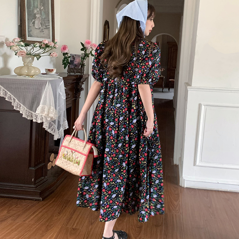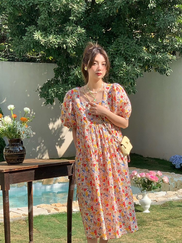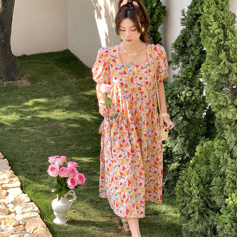 Blue Floral Square Neck Short Sleeve Dress Women Vintage Loose Puff Sleeve Long Dress Late Spring pired Summer High-quality product featuring spring outfit, thanksgiving dress, graduation dress and more. Modern design that fits the latest trends. Premium materials ensure durability and comfort. Order now for special offers! Product designed with attention to every detail. Suitable for all occasions and personal styles.