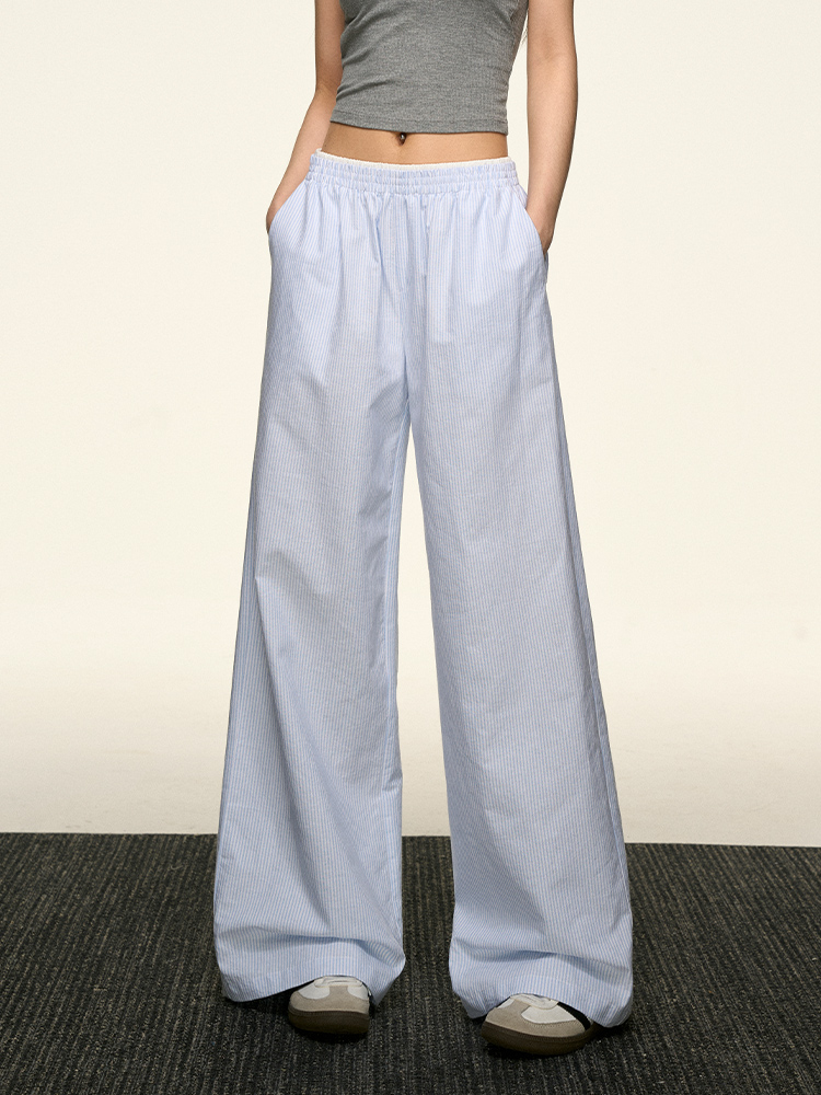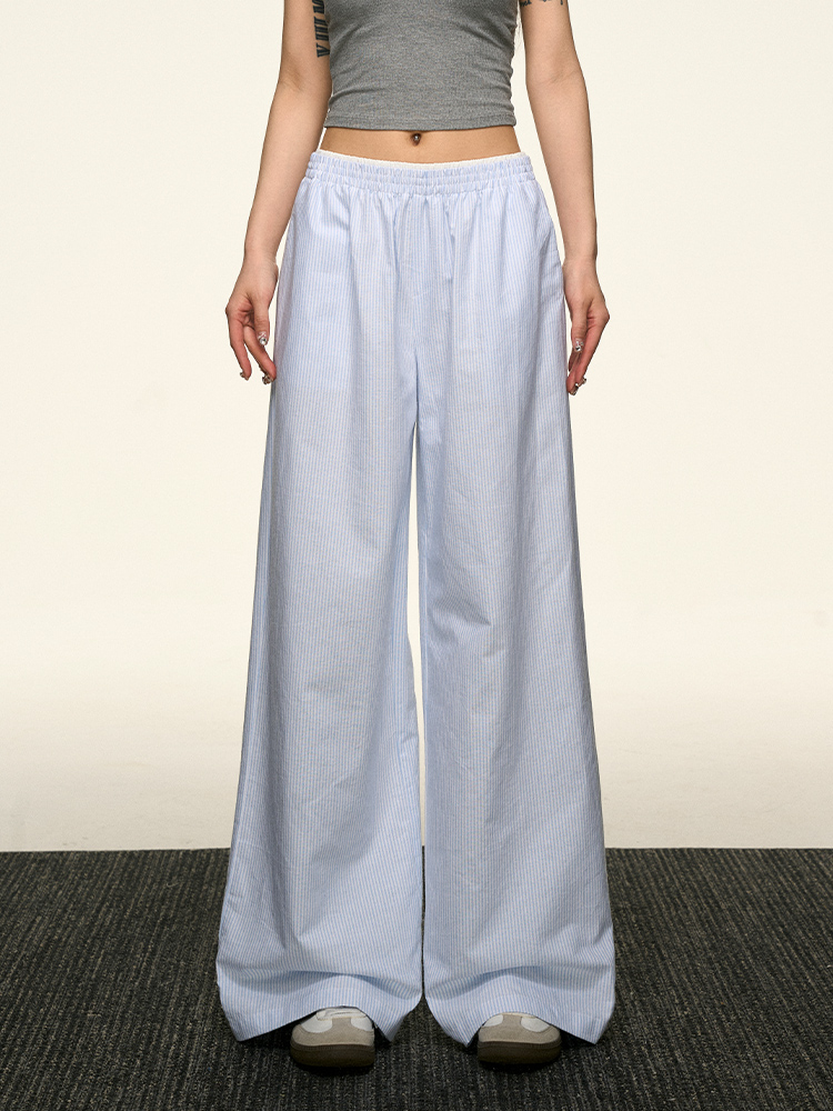 Blue Striped Wide Leg Pants Women Casual Summer Retro, Loose – Summer Fits