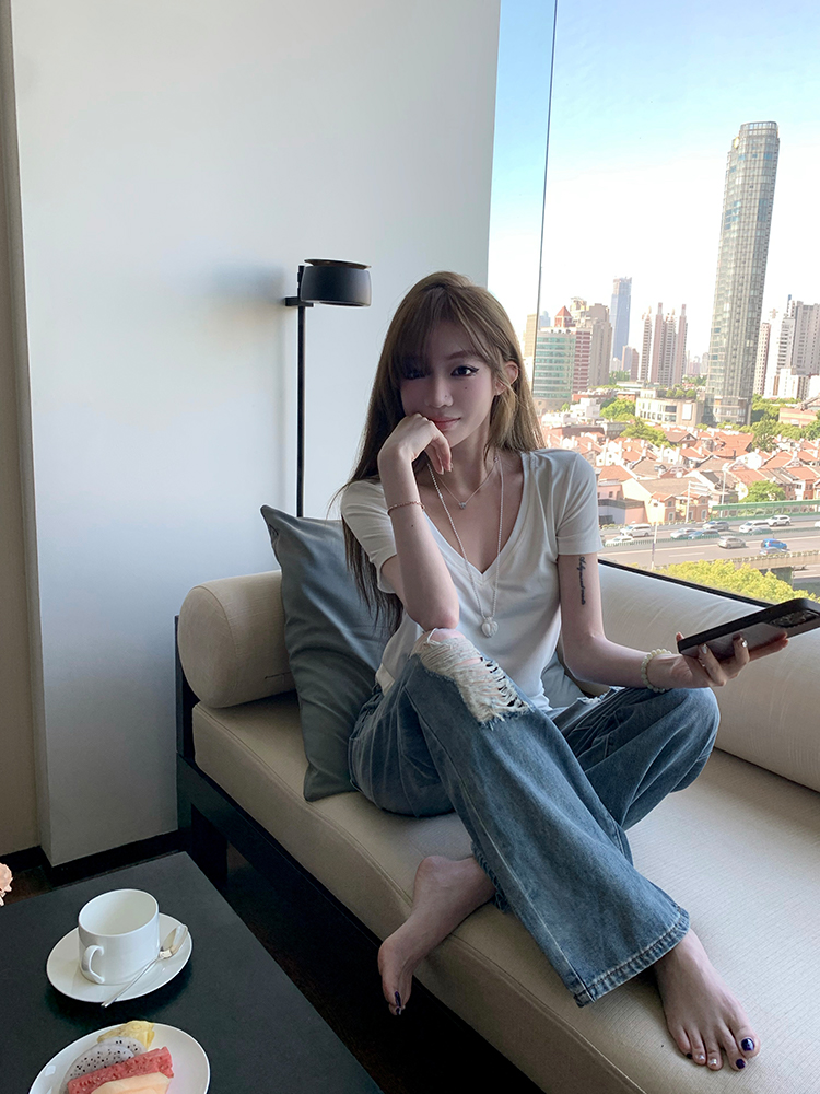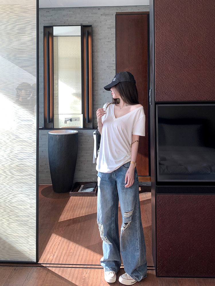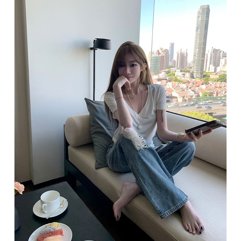 Cool V- Neck Short Sleeve Women Loose Slim Fit White Top, Casual, Y2K High-quality product featuring easy halloween costume, casual outfits, casual outfits winter and more. Modern design that fits the latest trends. Premium materials ensure durability and comfort. Order now for special offers! Product designed with attention to every detail. Suitable for all occasions and personal styles.