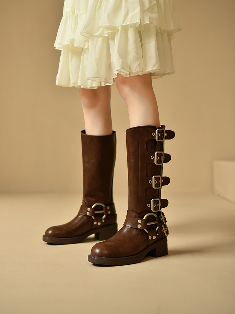 Brown Genuine Leather Buckle Long Boots Women Autumn Winter High Cowboy Boots, Footwear High-quality product featuring fall outfits women, warm fall outfits, leather pants outfit winter and more. Modern design that fits the latest trends. Premium materials ensure durability and comfort. Order now for special offers! Product designed with attention to every detail. Suitable for all occasions and personal styles.