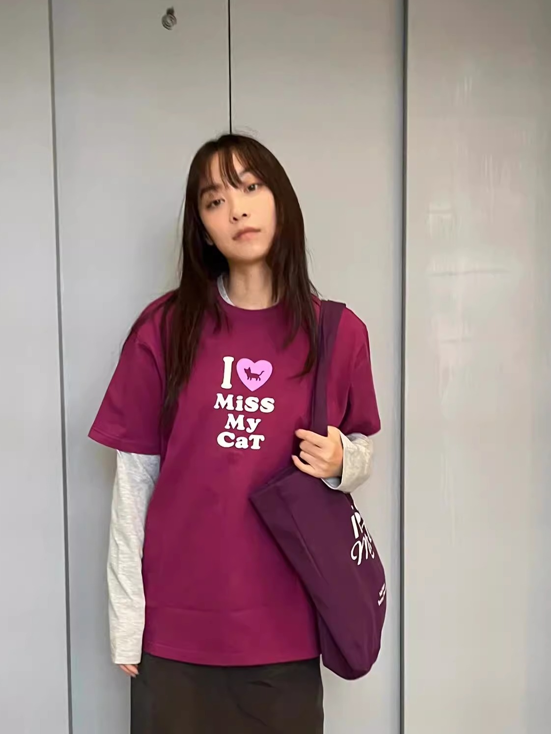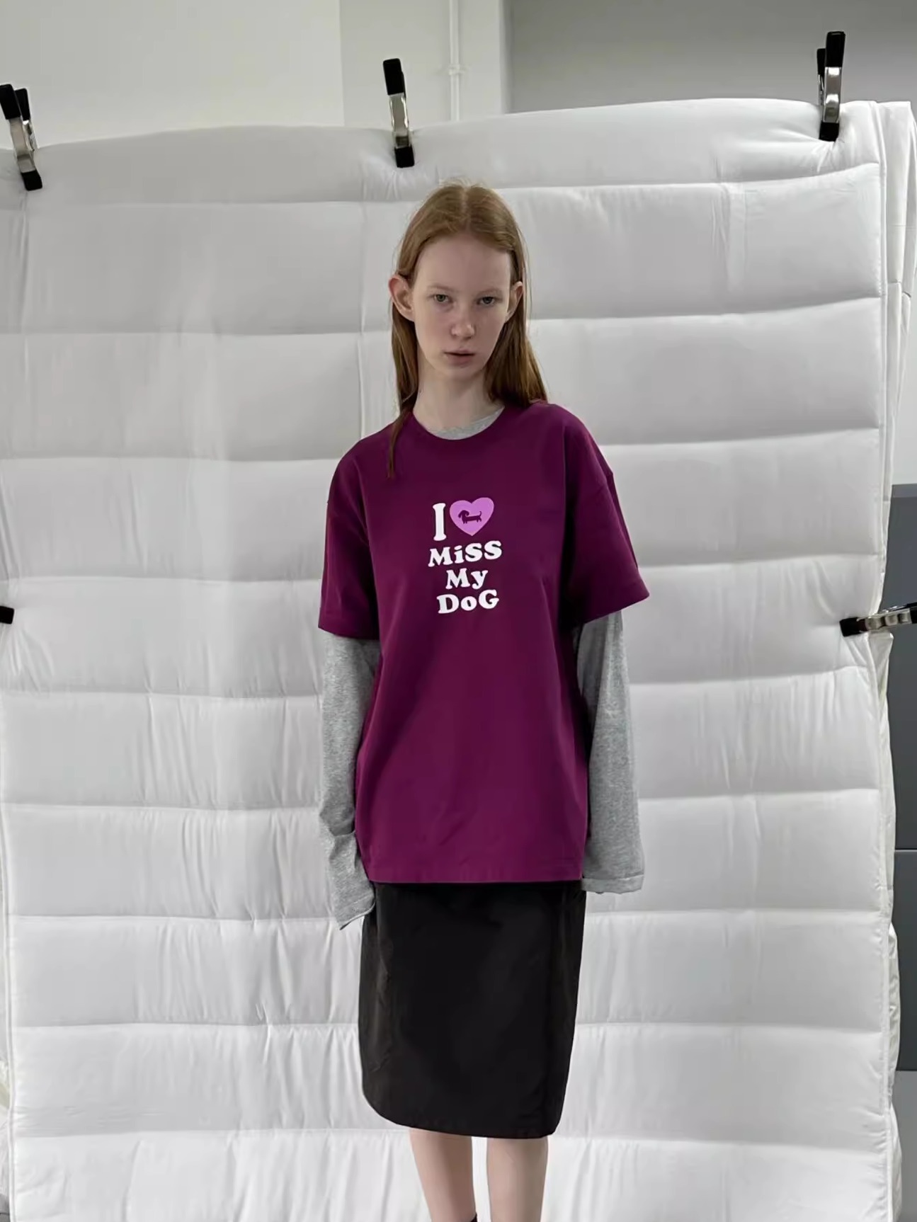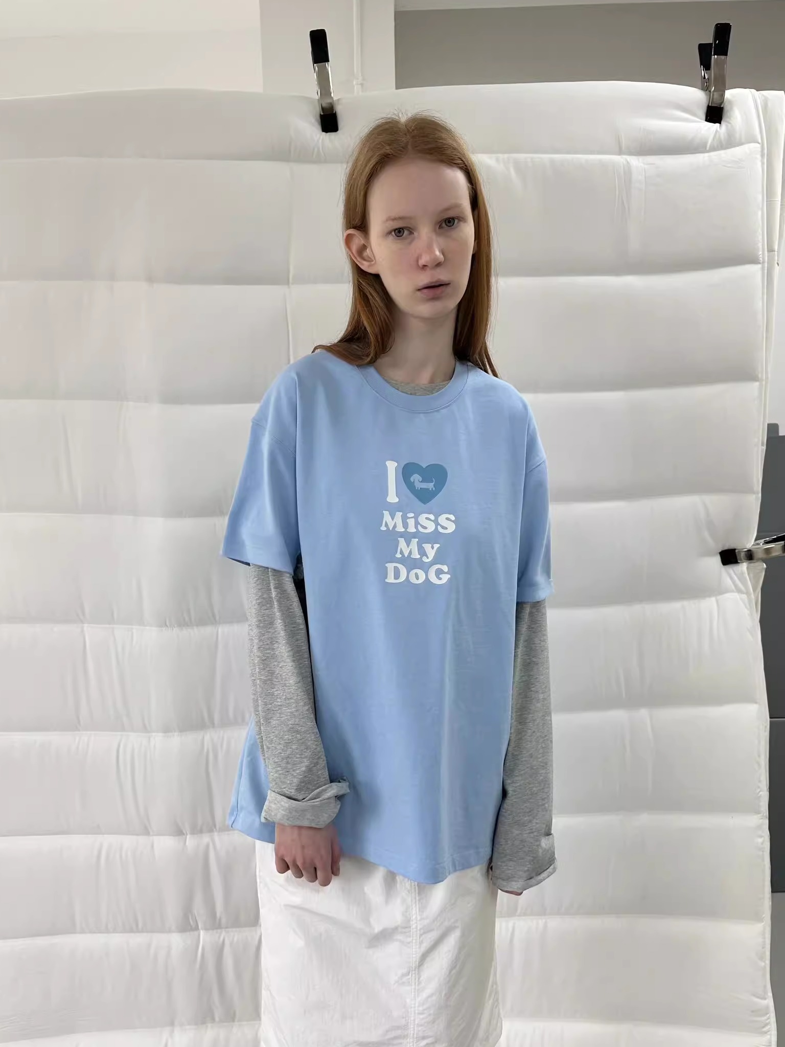Casual Outfits: Korean Dog Slogan Loose Fit Pure Cotton Short Sleeve Tee