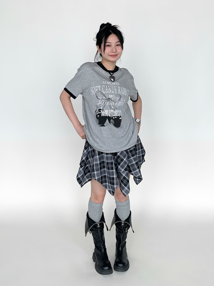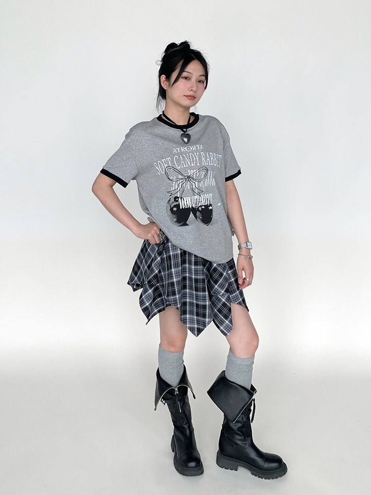 Cherry Print Neck Loose Casual Summer Top Gray White Multi Tee, Y2K High-quality product featuring summer fits, casual summer outfits, fall fits and more. Modern design that fits the latest trends. Premium materials ensure durability and comfort. Order now for special offers! Product designed with attention to every detail. Suitable for all occasions and personal styles.