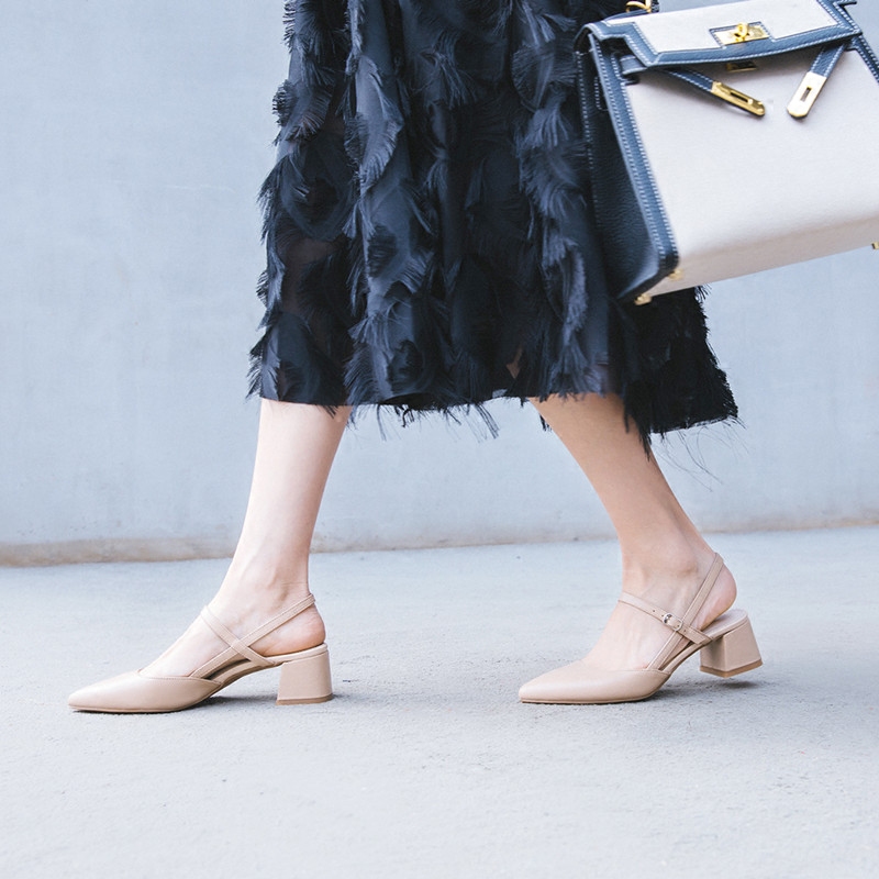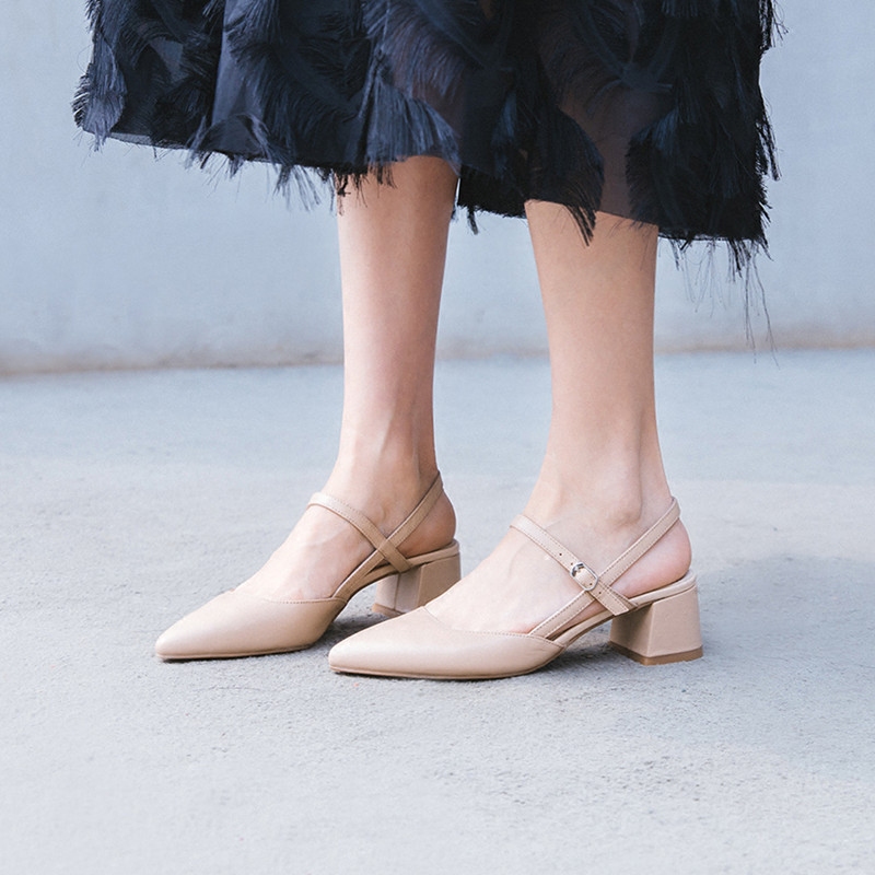 Korean Genuine Leather Mid Heel Sals Bridesmaids Chunky Hee – Spring Outfit