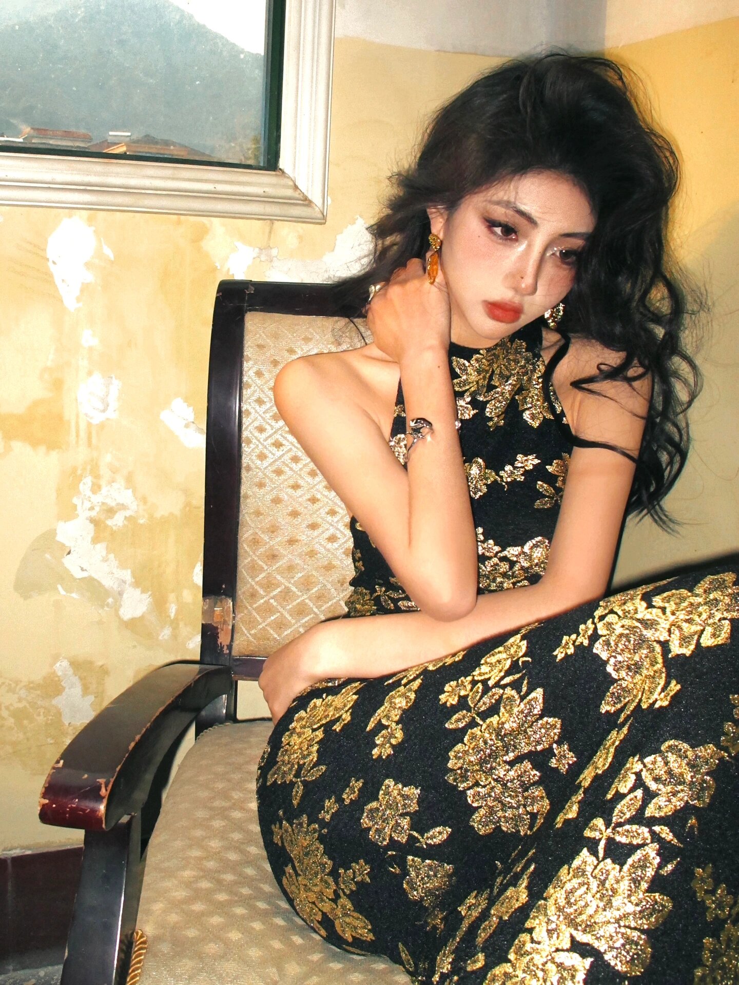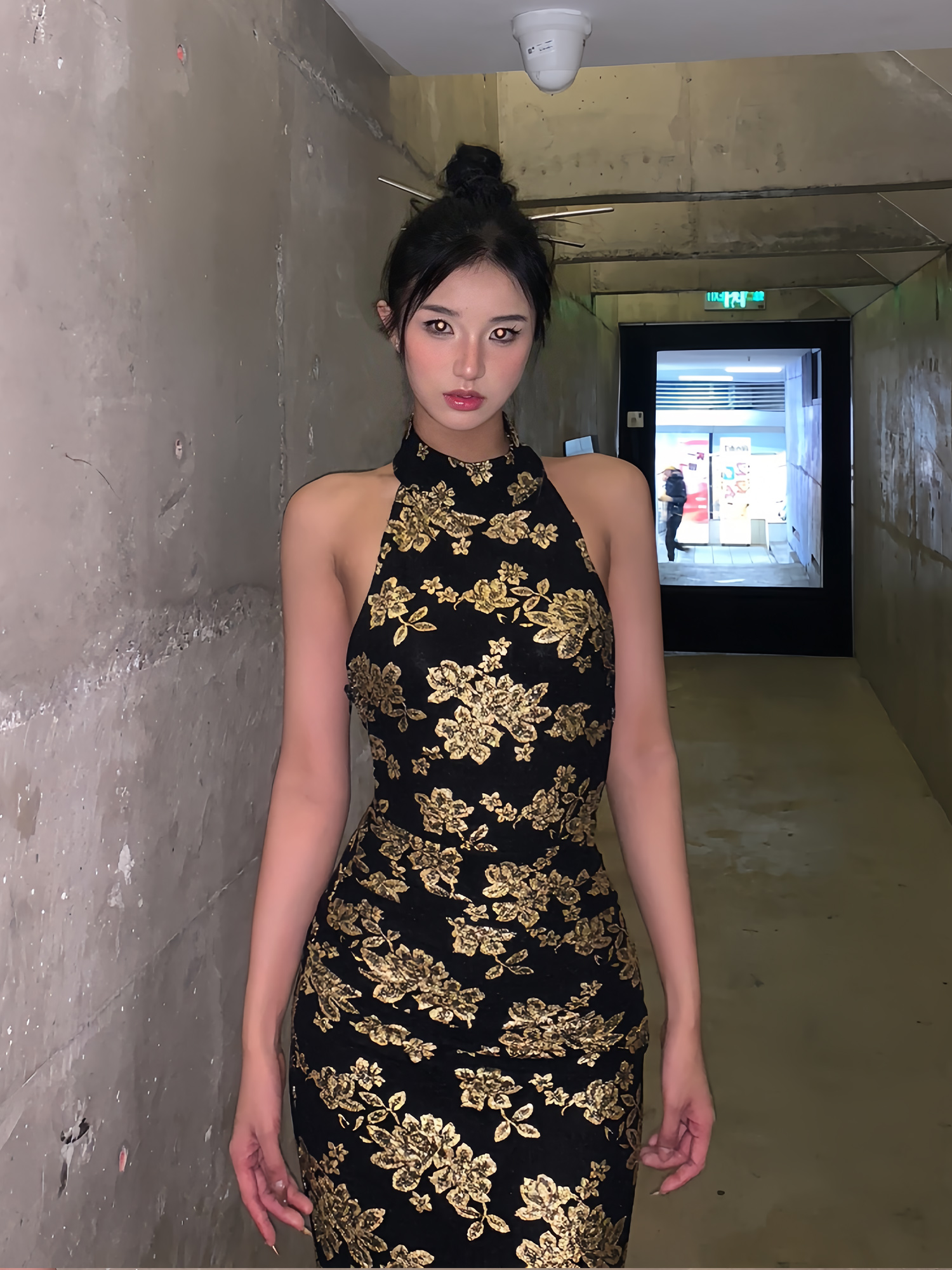 Gold Foil Halter Neck Graduation Dress: the Perfect Choice for Your Evening