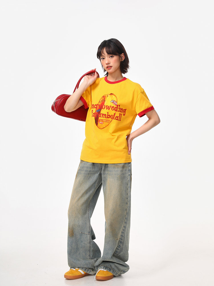 Elevate your wardrobe with our Color-Block Round Neck T-Shirt for Women, designed in a trendy American retro style. This boxy fit tee features a vibrant ginger yellow hue and eye-catching print, perfect for making a statement while ensuring all-day comfort. Ideal for casual outings or laid-back weekends, this t-shirt pairs effortlessly with your favorite jeans or shorts. Don’t miss out on this must-have addition to your collection add to your cart today!