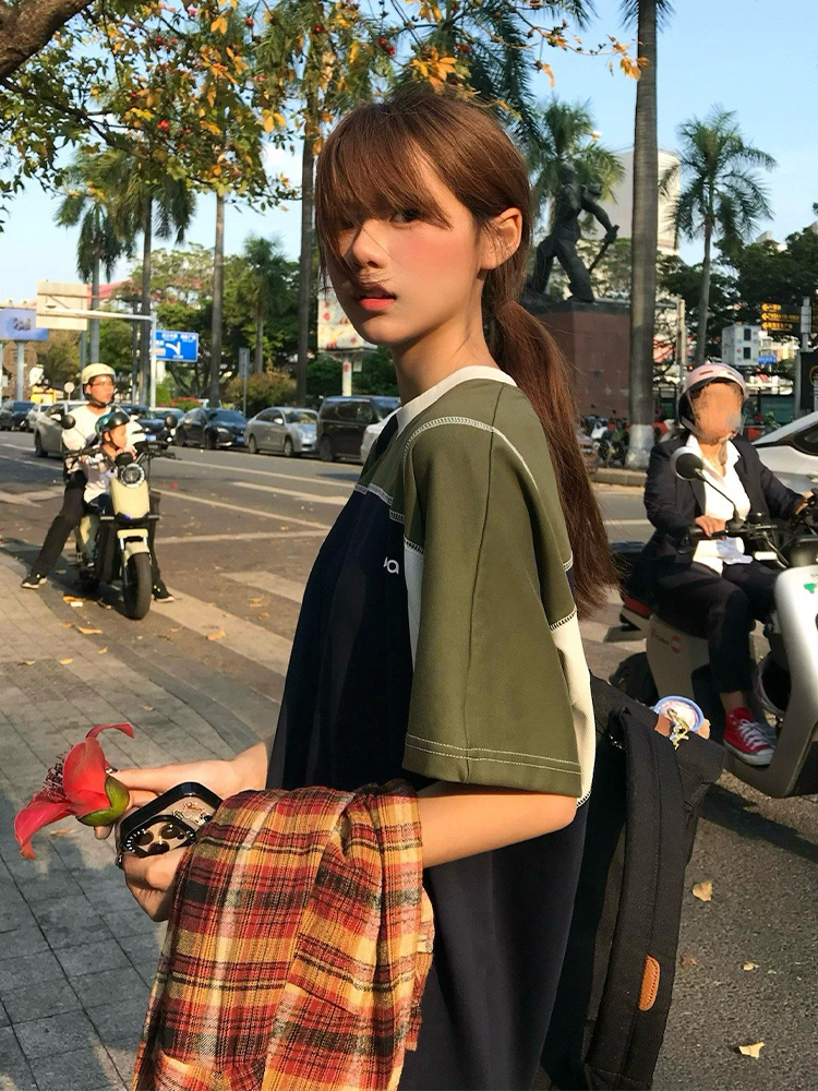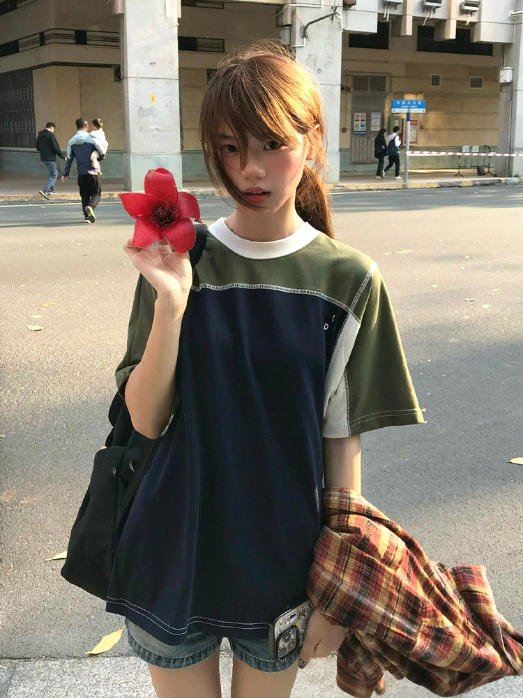 Splicing Heavyweight Raglan Women Retro Summer Loose Casual Top High-quality product featuring casual summer outfits, casual outfits, fall outfits women and more. Modern design that fits the latest trends. Premium materials ensure durability and comfort. Order now for special offers! Product designed with attention to every detail. Suitable for all occasions and personal styles.