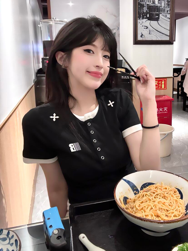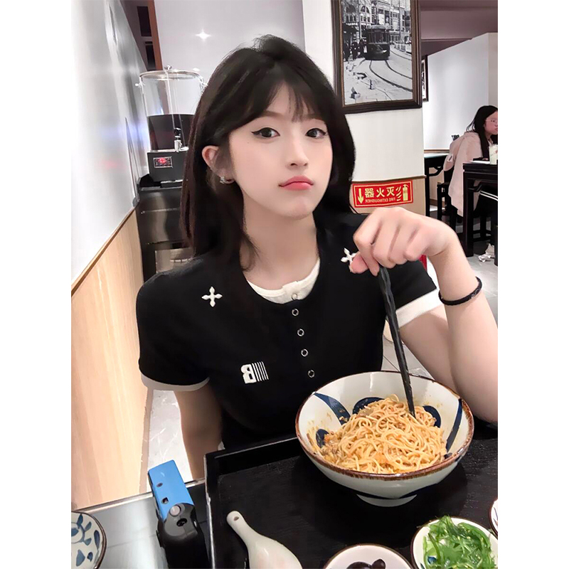Black Short Sleeve Women Slim Fit Top – Perfect for Summer Fits