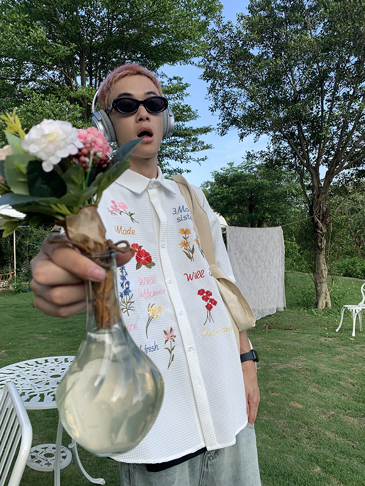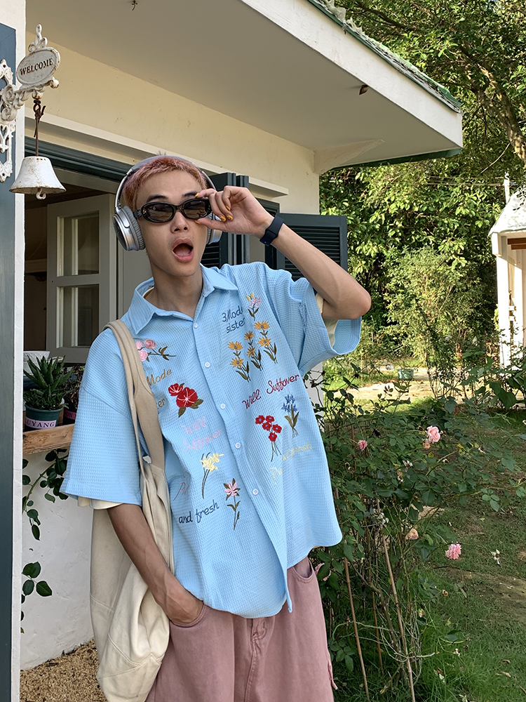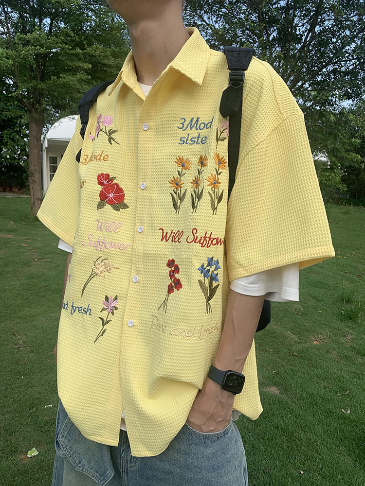 Floral Embroidered Waffle Short Sleeve Shirt Men, Women Retro Casual Loose Fit Summer High-quality product featuring casual summer outfits, spring outfit, spring outfits and more. Modern design that fits the latest trends. Premium materials ensure durability and comfort. Order now for special offers! Product designed with attention to every detail. Suitable for all occasions and personal styles.