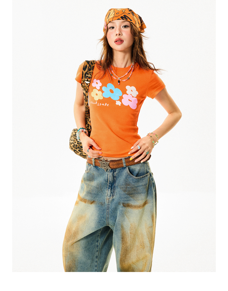 Elevate your summer wardrobe with our Colorful Floral Shoulder Short Sleeve T-Shirt for Women, designed for a flattering slim fit that accentuates your silhouette. This dopamine crop top captures the essence of 90s style with its vibrant floral print, making it the perfect choice for sunny days and casual outings. Crafted for comfort and versatility, it’s easy to pair with your favorite high-waisted jeans or shorts. Don’t miss out on this must-have piece add it to your cart and embrace the joy of effortless fashion!