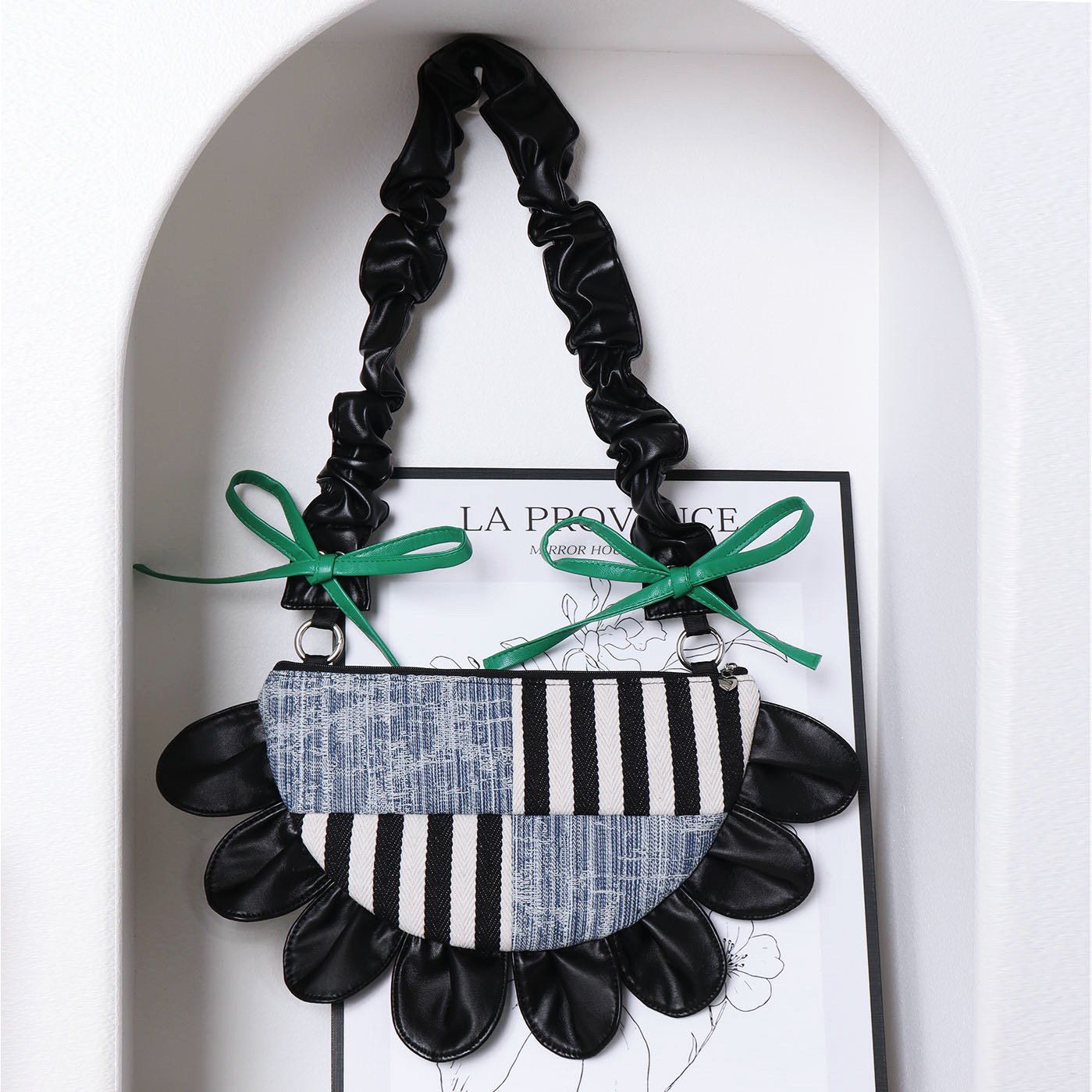Elevate your autumn and winter wardrobe with our Contrasting Color Floral Underarm Bag, a unique spliced denim bow half-moon crossbody bag that seamlessly blends style and functionality. Designed with a niche aesthetic, this bag features a stunning floral pattern and a chic bow detail, making it the perfect accessory for any outfit. Its comfortable fit allows for easy carrying, while the eye-catching design ensures you’ll stand out wherever you go. Don’t miss out on this must-have piece add it to your cart today and redefine your seasonal style!