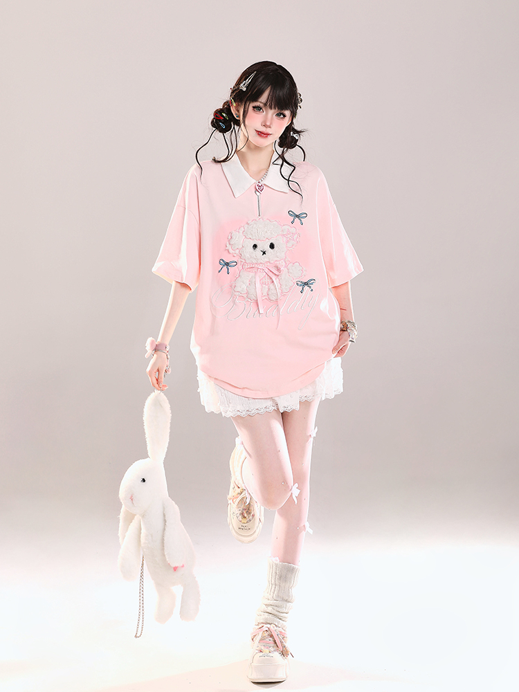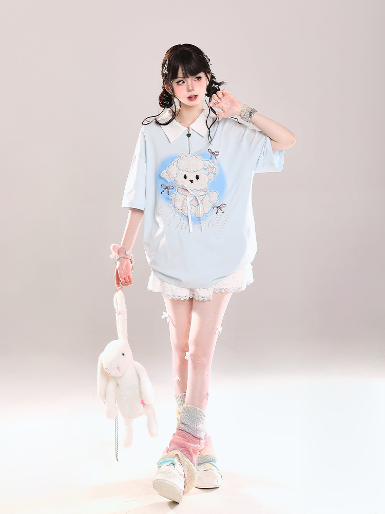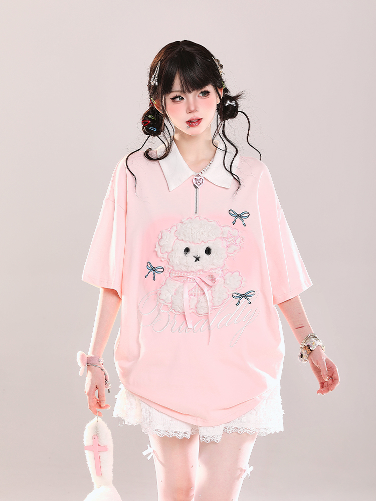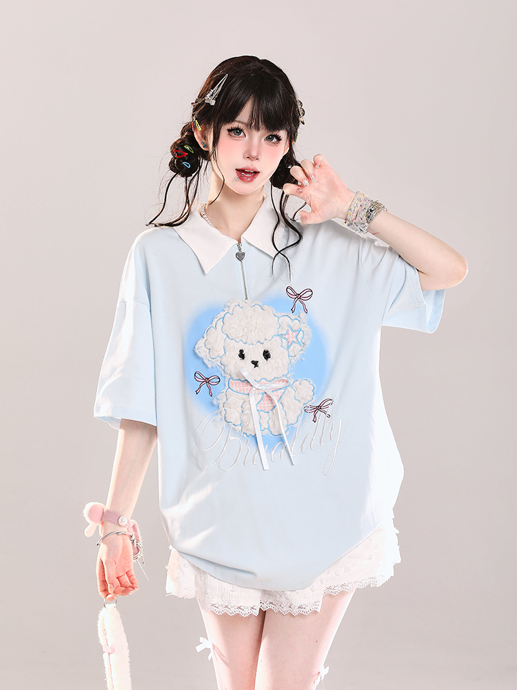 Cute Cartoon Puppy Polo Collar Short Sleeve Summer Casual Loose Fit Top, Y2K High-quality product featuring summer fits, casual summer outfits, easy halloween costume and more. Modern design that fits the latest trends. Premium materials ensure durability and comfort. Order now for special offers! Product designed with attention to every detail. Suitable for all occasions and personal styles.