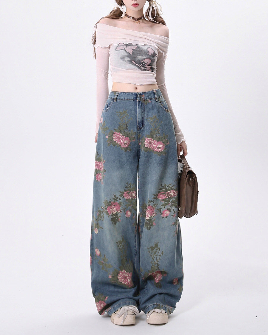 Cute Outfits, Outfit po Casual Cottagecore Rose Print Wide Jeans High-quality product featuring casual outfits, spring outfit, pretty outfits and more. Modern design that fits the latest trends. Premium materials ensure durability and comfort. Order now for special offers! Product designed with attention to every detail. Suitable for all occasions and personal styles.