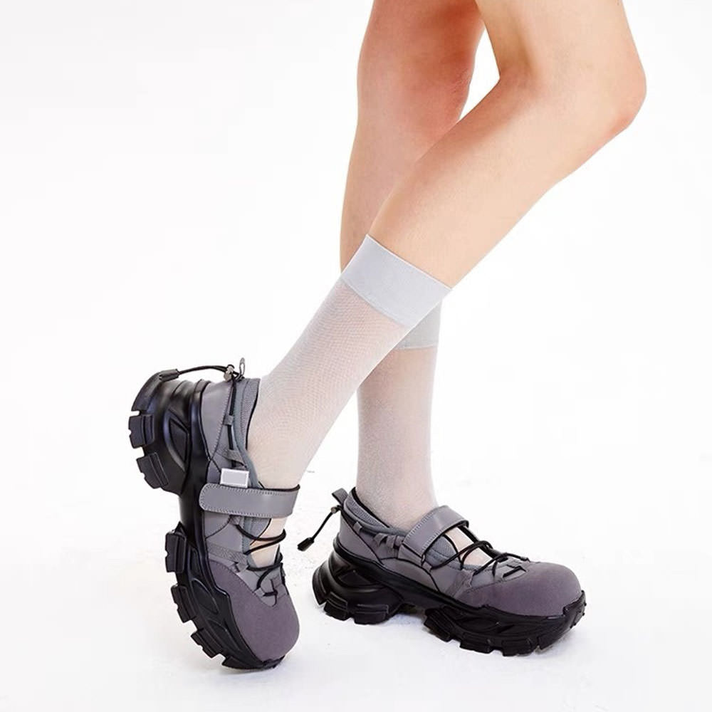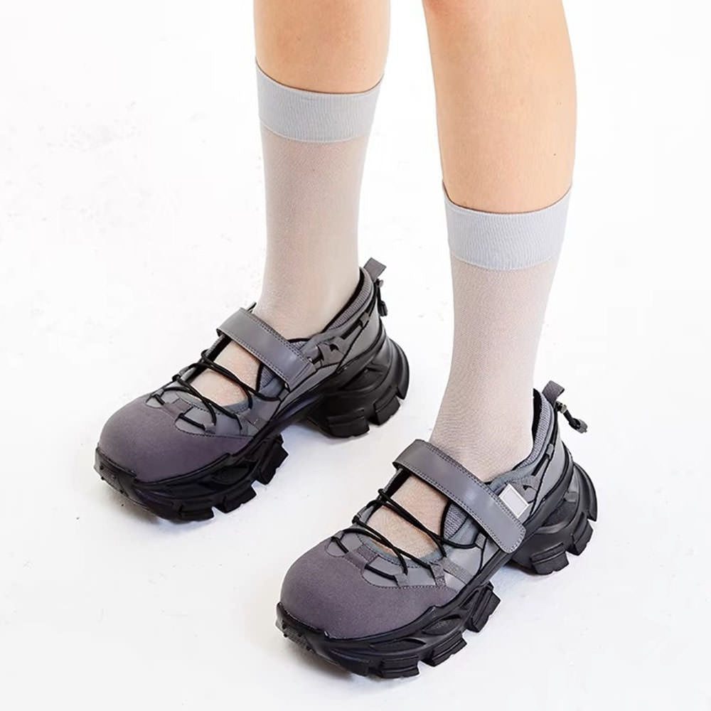 These futurecore aesthetic sandals feature strap closures, a chunky sole, and a sculpted design
