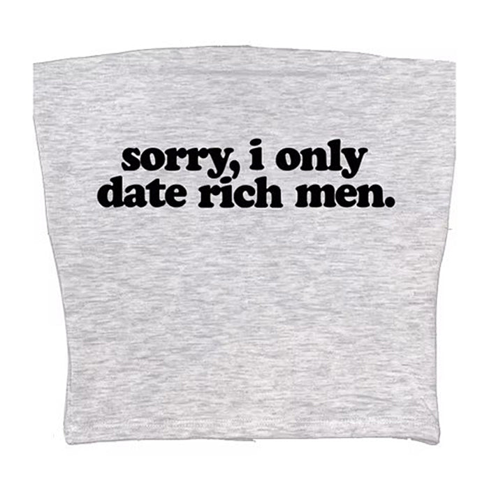 Y2K tube top with ‘Sorry, I Only Date Rich Men’ text on the front