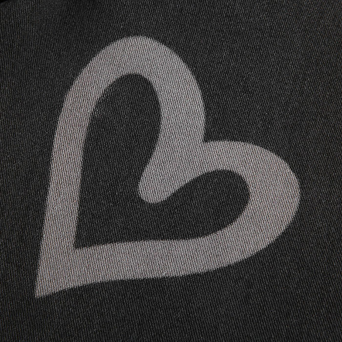 These Y2K aesthetic graffiti jeans have a high waist fit, a button and zip closure, and a hearts graffiti print all over ❤