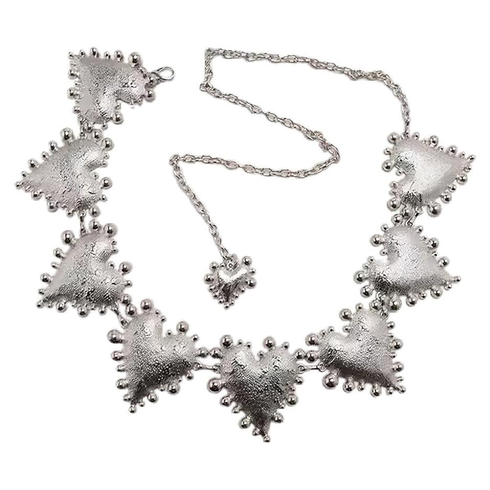 This heart chain belt features intricately designed silver hearts, adding a bold and grunge accent to your aesthetic outfit