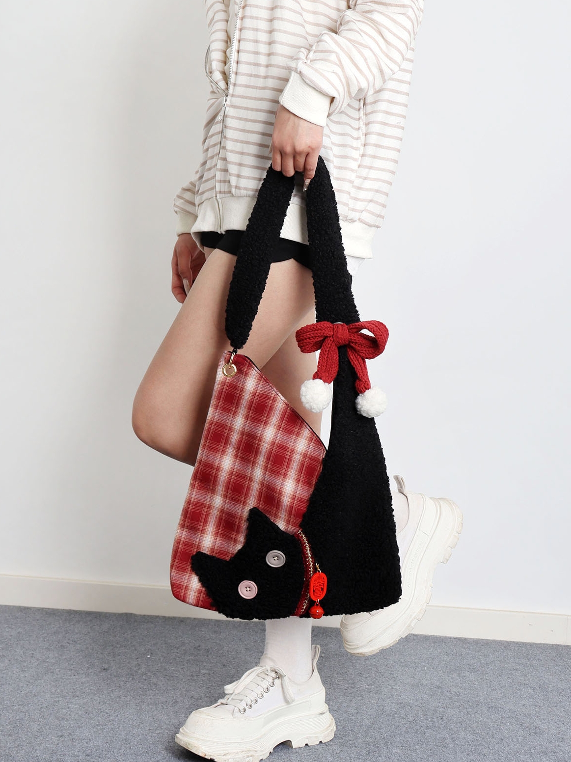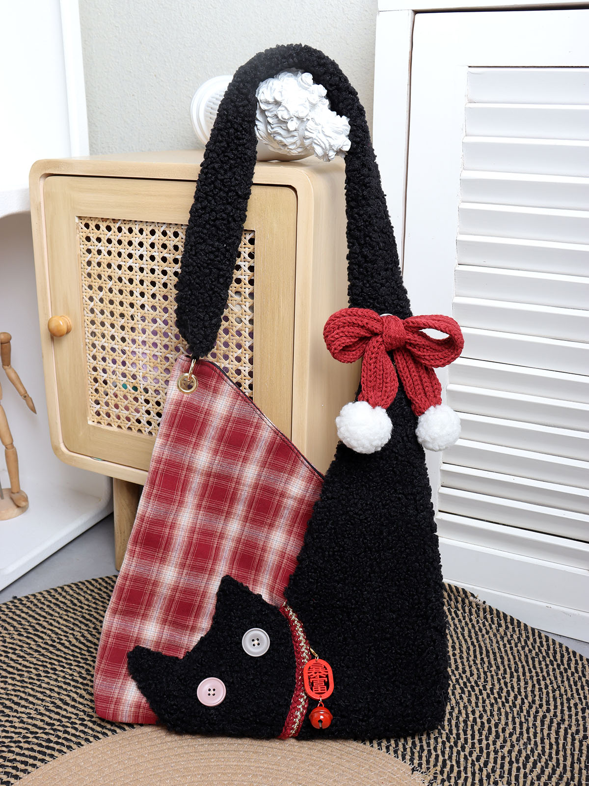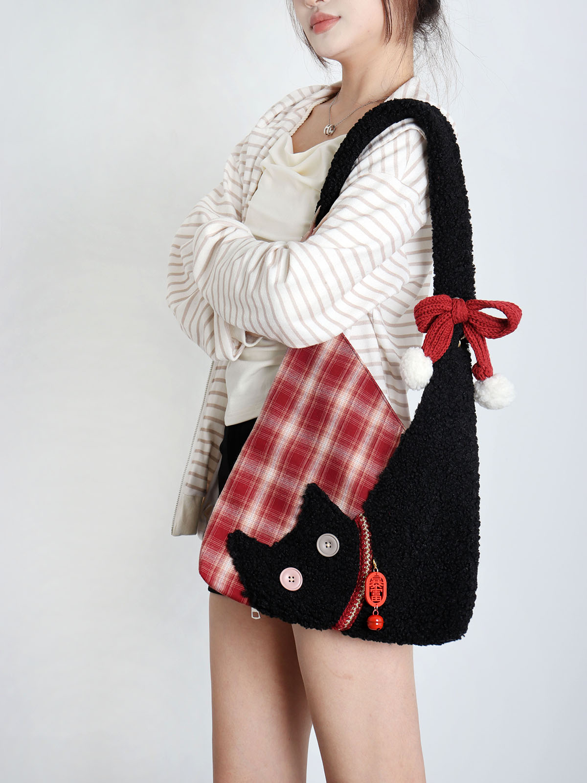 Cute Plush Cat Tote Bag Red Series New Year Birthstone Lucky – Y2k Outfits