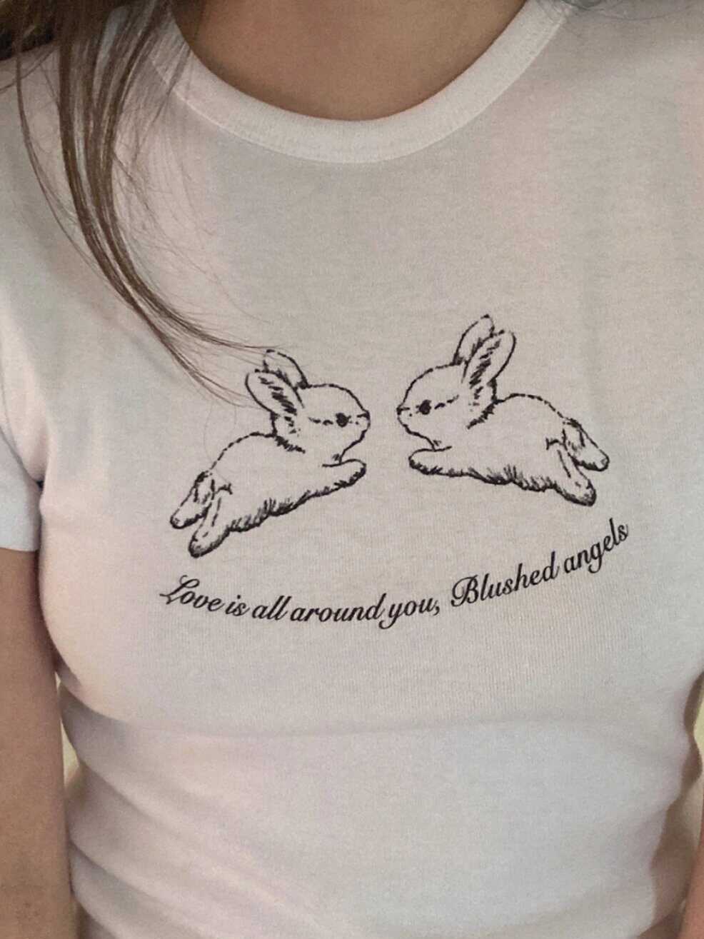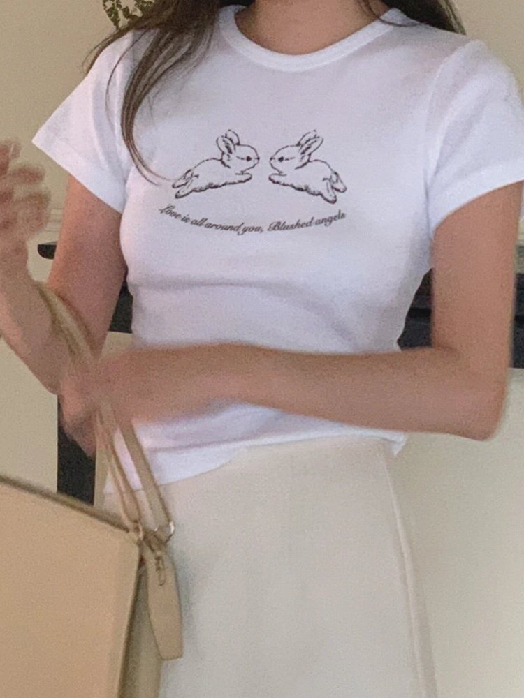 Cute Rabbit Print Slim Fit Short Sleeve Cotton Women Korean, Heavyweight Fabric High-quality product featuring cute everyday outfits, cute winter outfits, work outfits women and more. Modern design that fits the latest trends. Premium materials ensure durability and comfort. Order now for special offers! Product designed with attention to every detail. Suitable for all occasions and personal styles.