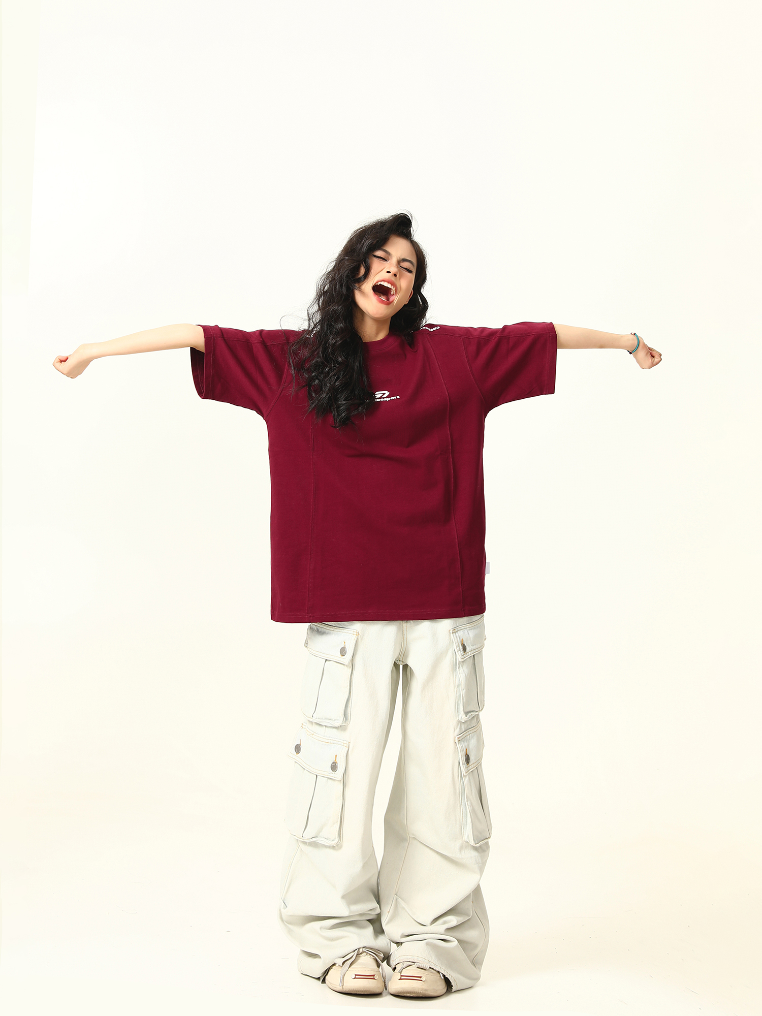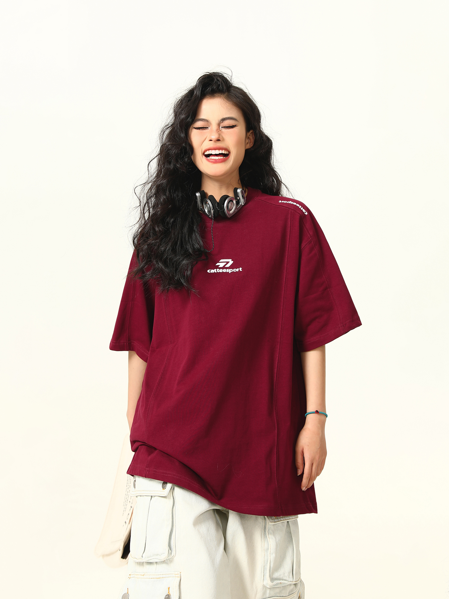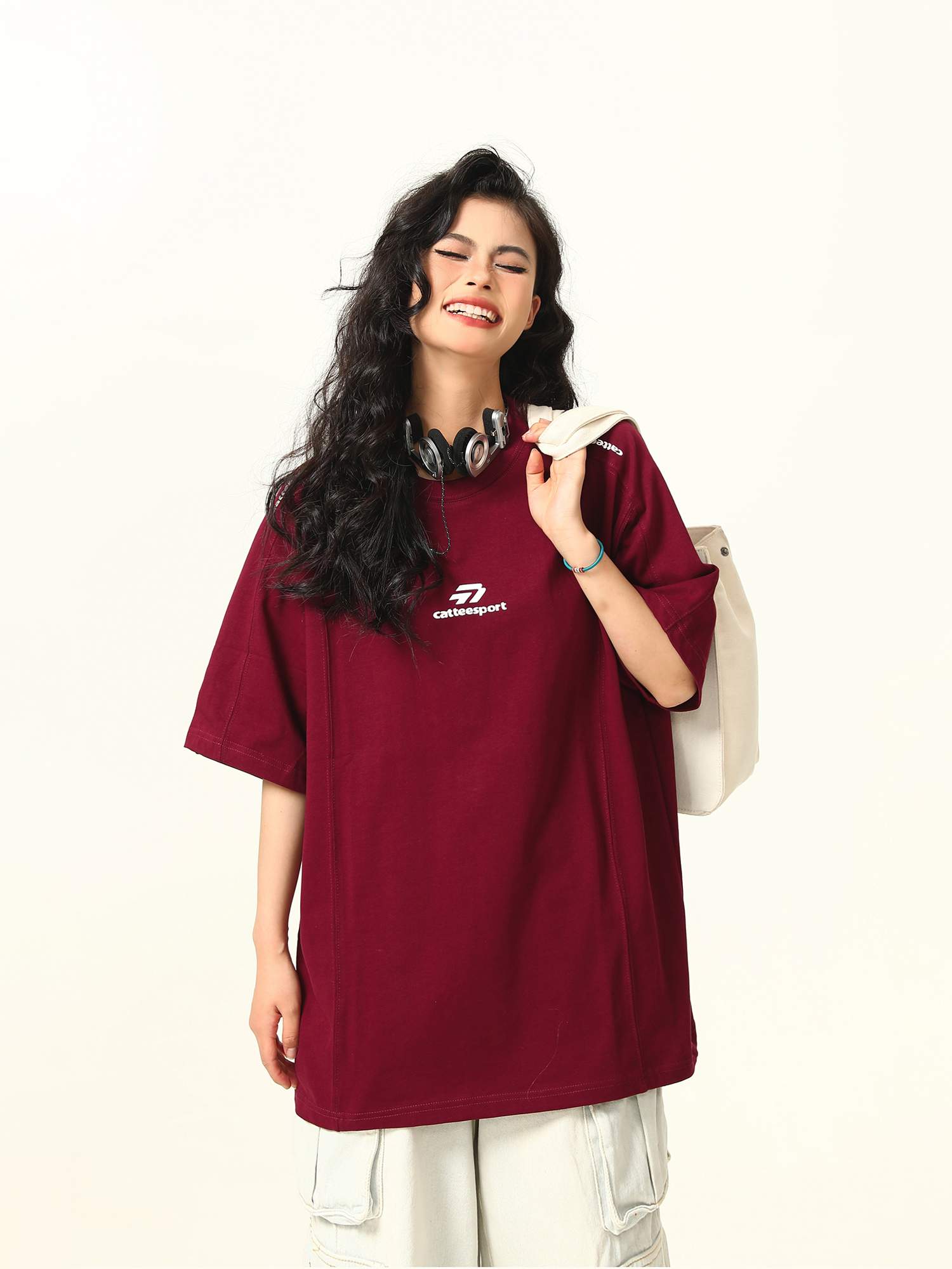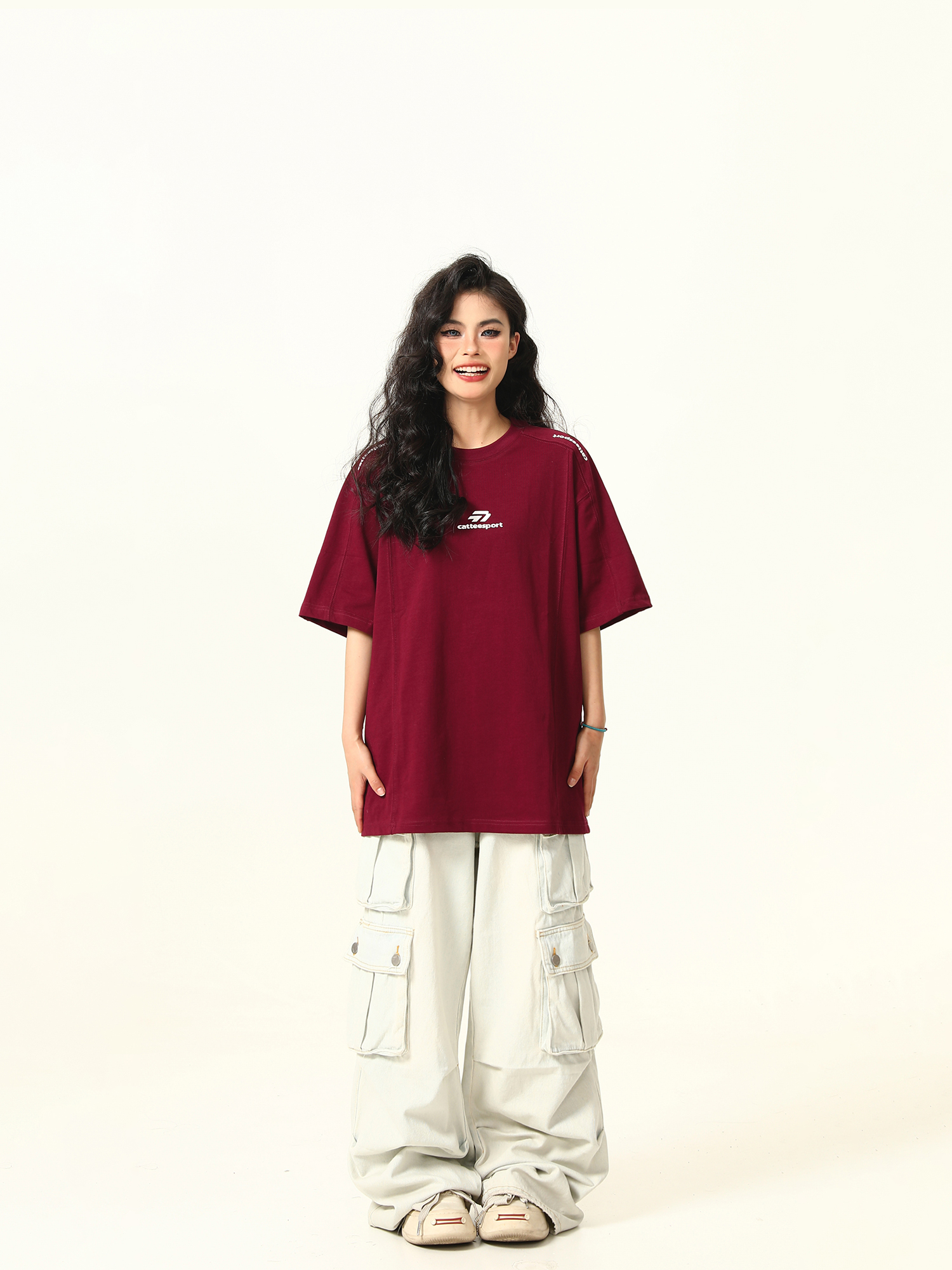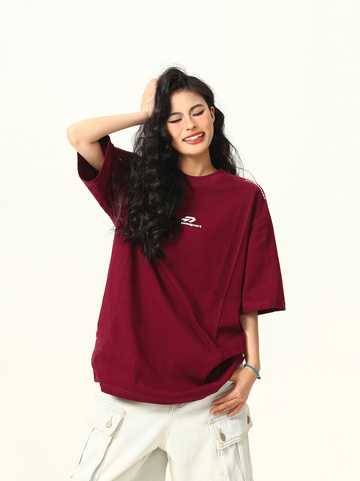 Dark Red Heavyweight Cotton Short Sleeve Top – Stylish Work Outfits Women