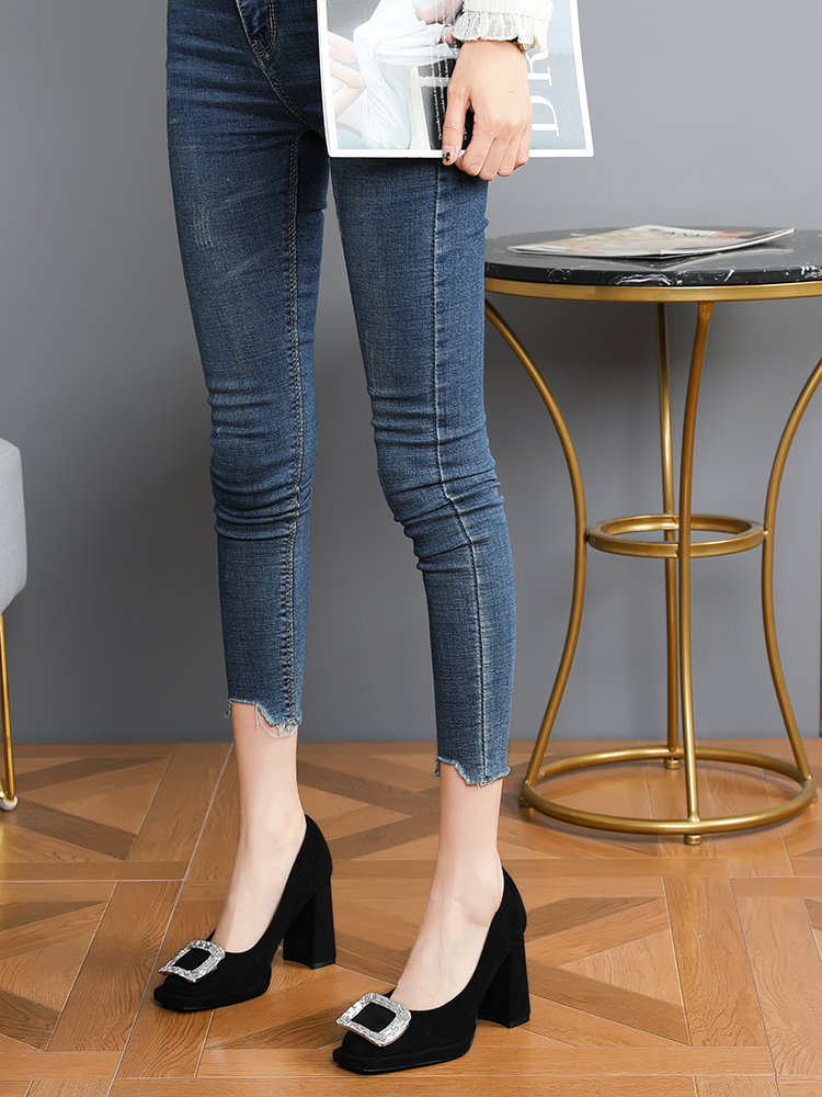 Black Suede High Heels Square Buckle, Rhinone, Square Toe Sl – Hoco Dresses