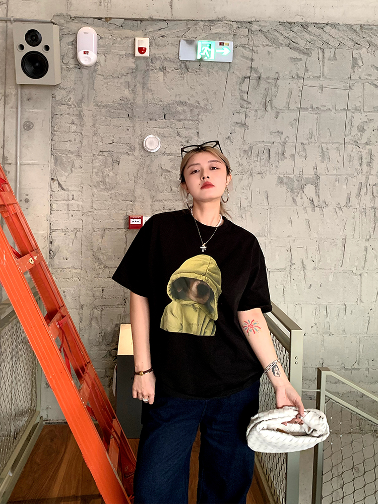 Neck Short Sleeve Dog Print Women Spring/summer Top, Casual Y – Y2k Outfits