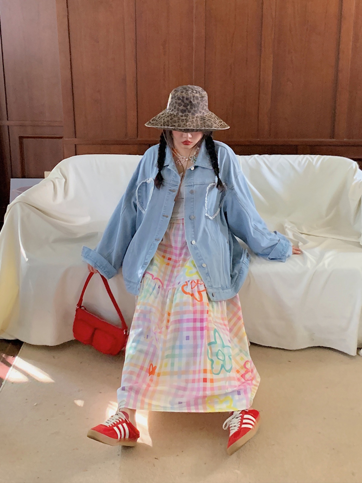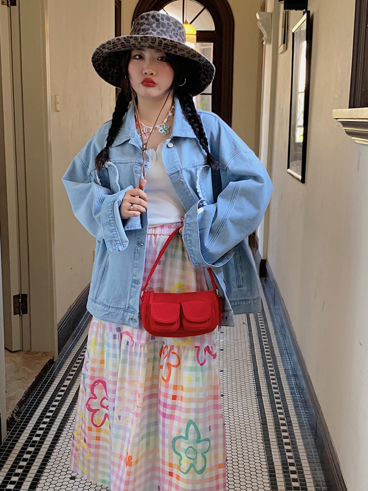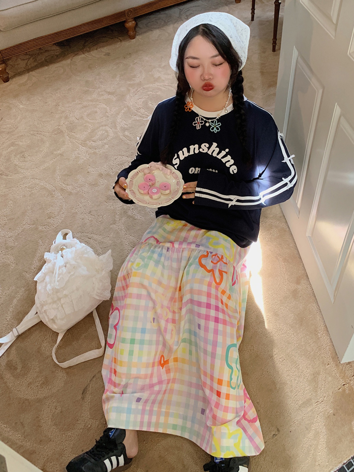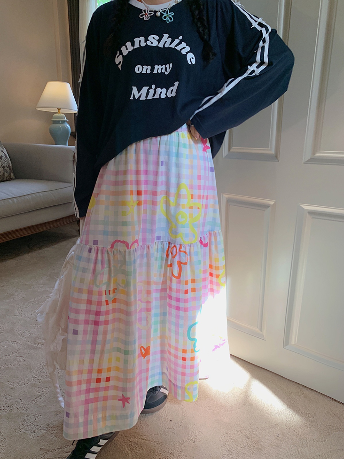 Embroidered Checkered Midi Skirt Women High Waisted Plus Si – Skirt Outfits