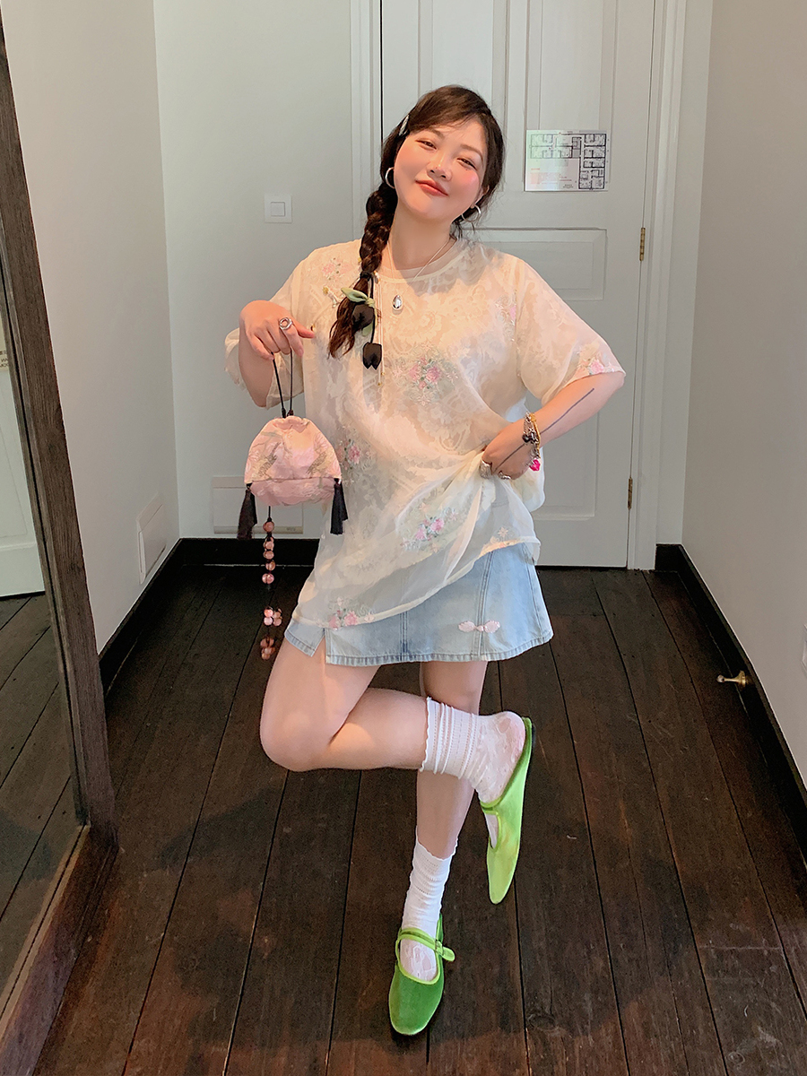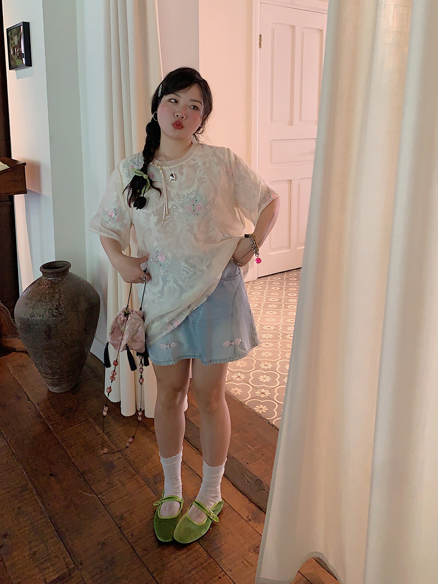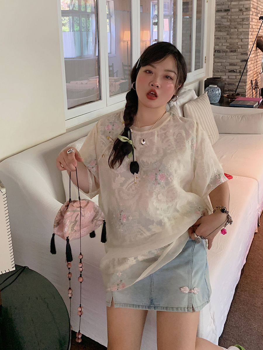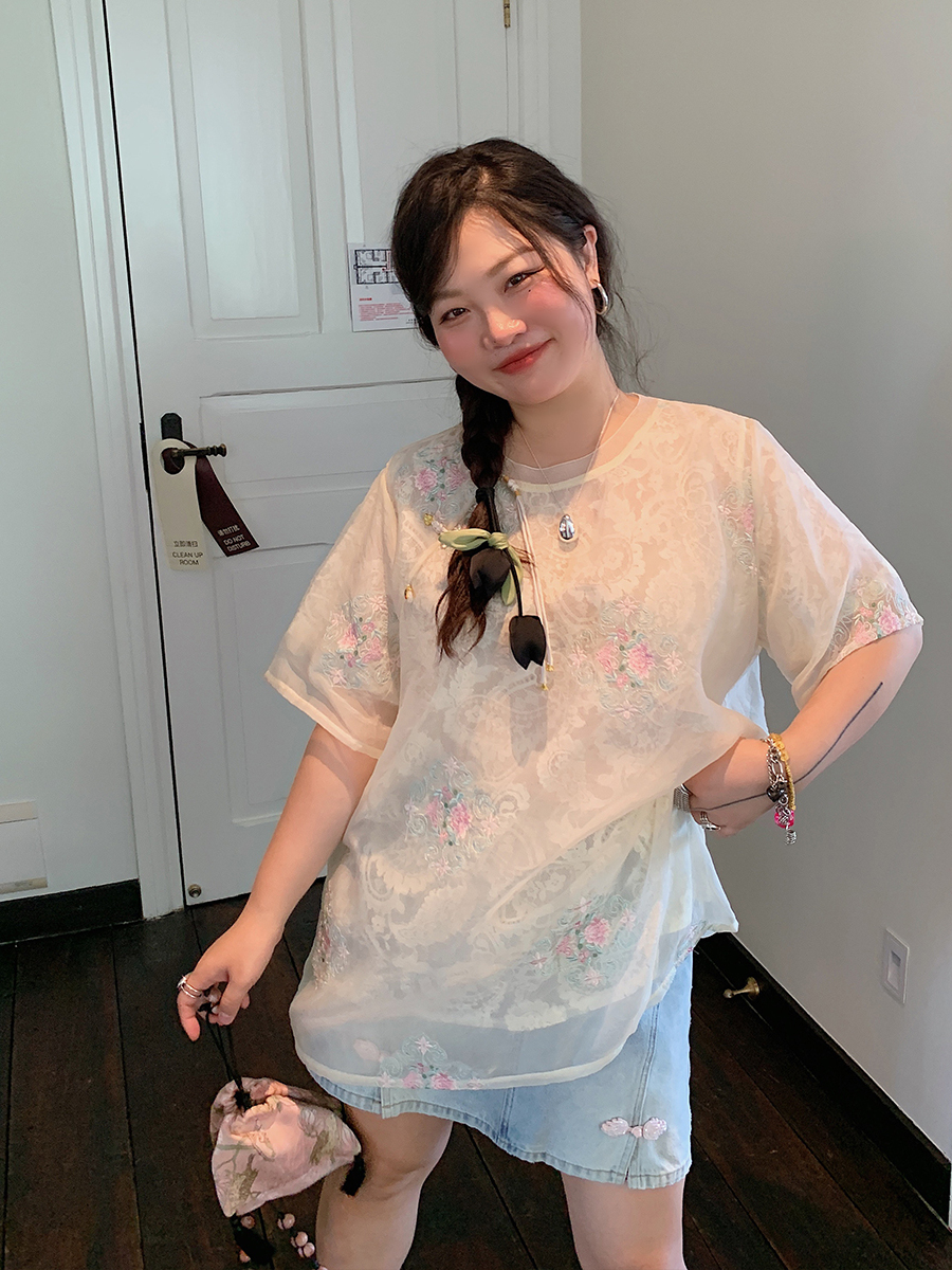 Embroidered Lace Women, Short Sleeve Plus Size Top, Summer, B – Summer Fits